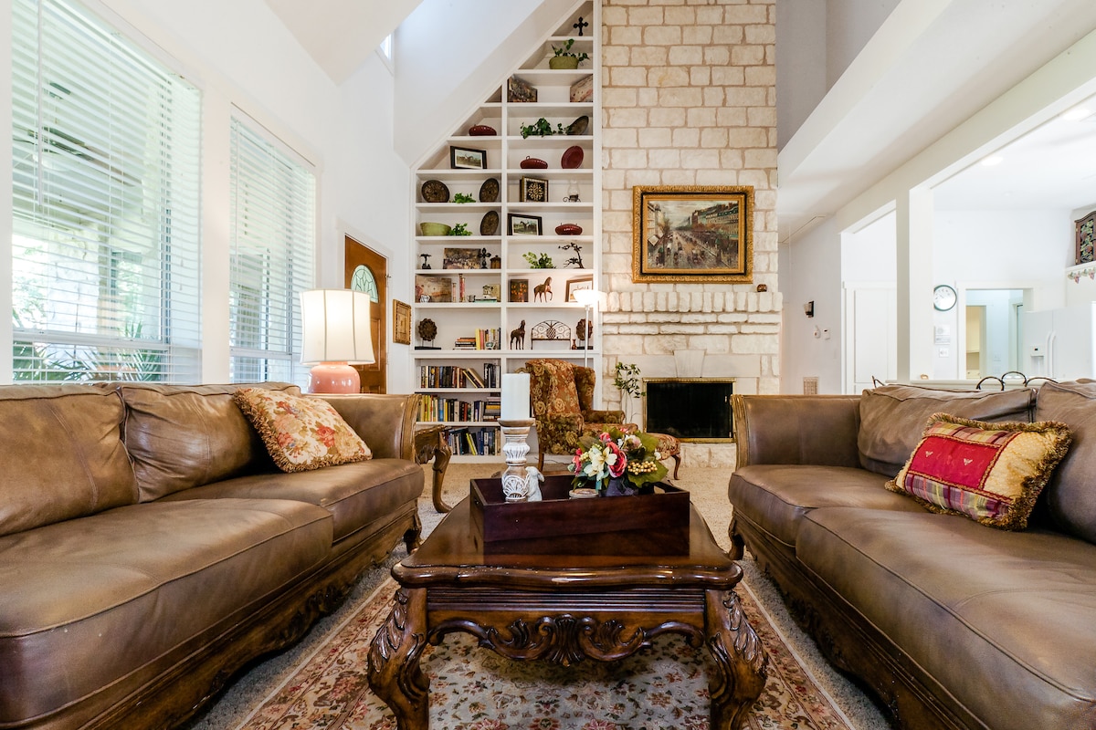 Dieses einzigartige Haus in der Arboretum-Gegend befindet sich in einer ruhigen Nachbarschaft und nur wenige Minuten von Restaurants, fünf Lebensmittelgeschäften und einer guten Autobahnanbindung entfernt. In der Nähe des Q2, The Domain & Renaissance Austin Hotels. Wenn du für ein Moody Center-Konzert in die Stadt kommst, ist das Haus etwa 15-20 Minuten entfernt. Geräumig mit 4 Schlafzimmern (1 King-Size-Bett und 2 Queensize-Betten & 1 Einzelbett) und 3 Badezimmern. Der Pool und der Whirlpool sind das ganze Jahr über verfügbar, aber der Pool ist von Mai bis Oktober warm. Das ist ein toller Ort zum Entspannen.