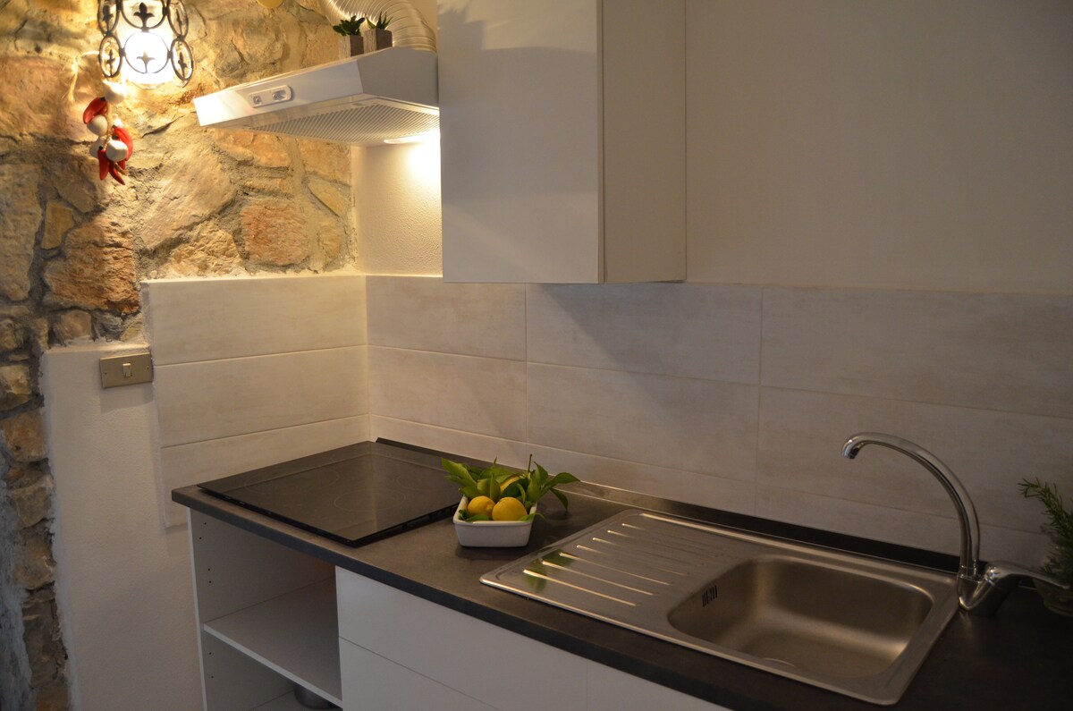 Die Wohnung von MQ 60 ist 200m vom Meer entfernt, Parkplatz, separater Eingang und belebt auf mehreren Ebenen besteht aus: ERDGESCHOSS: Wohnzimmer mit Doppelschlafcouch und Esstisch, der mit der voll ausgestatteten Küche verbunden ist. Im ERSTEN STOCK befindet sich das Bad mit Dusche und das Schlafzimmer mit Doppelbett. Die AUSSENTERRASSE ist mit Tisch und Gartenausrüstung (Liegestühle, Sonnenschirm) ausgestattet.