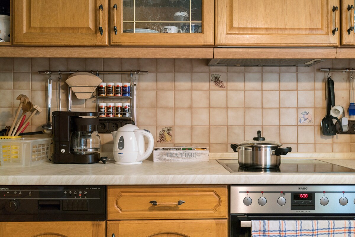 Internet: 50 megas download, 10 megas upload. Deutsch: (for english please use Google translate) Die ganze Wohnung ist völlig ausgestattet, es gibt ein Aldi supermarkt an der anderen Seite der Straße und die Stadtzentrum ist bequem zu fuß zu erreichen. Die Eingang zum park der Stadt ist 20 meter entfernt. Es gibt ein Biergarten mit wundervollem Essen in der mitte des Parks und ein berühmter Michelin (1) Restaurant sehr in der nähe.