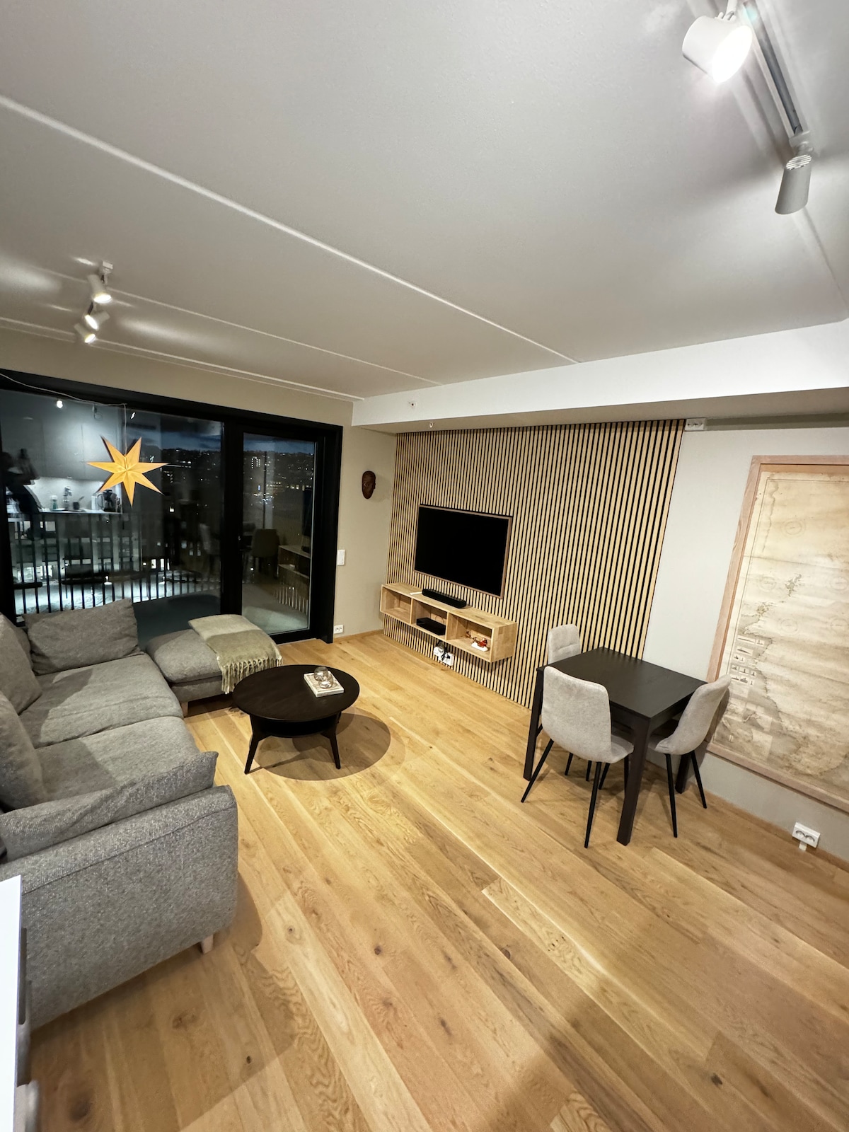 Gemütliche, nagelneue und ruhige Wohnung mit zentraler Lage und atemberaubendem Blick auf Tromsø und die umliegenden Berge. Mit etwas Glück kannst du sogar die Nordlichter über den Berggipfeln tanzen sehen. Vom Wohnzimmerfenster aus siehst du den ikonischen Tromsdalstind-Berg, die atemberaubende Arktische Kathedrale, die beliebten Sherpa-Stufen und die Seilbahn zum Berg Fløya. Die Wohnung ist perfekt gelegen, um alles zu erkunden, was Tromsø zu bieten hat — so wird die Planung deines Aufenthalts ganz einfach.