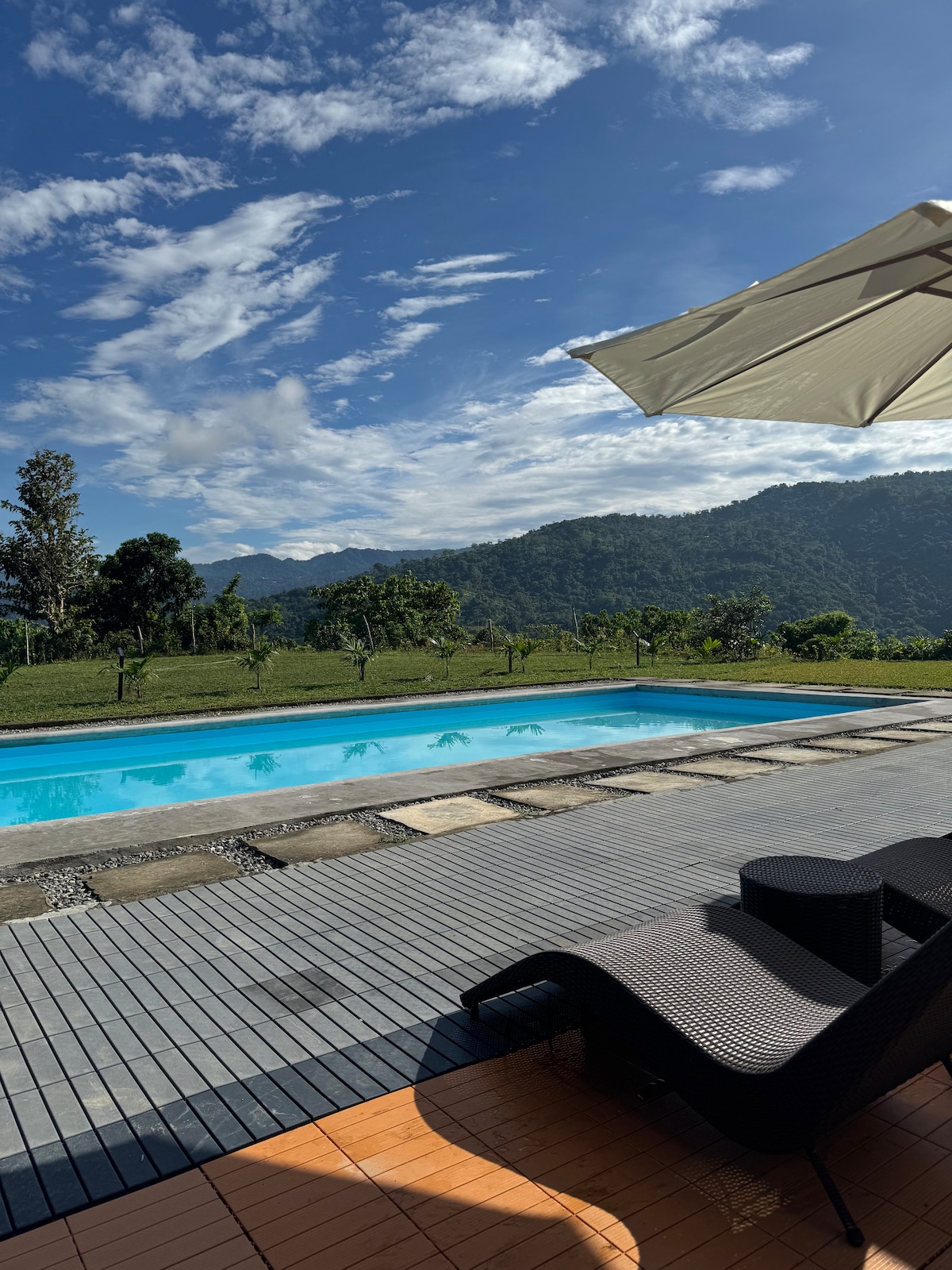 The private farm resort is located in Wenceslao, Caba, La Union. It’s in the grapes farm area in LU and 40 mins away from San Juan. The place is a short walk away from the beach. The whole villa is for the exclusive use of guests. It has 2 bedrooms, 3 bathrooms, living, kitchen & dining area . Enjoy our amenities: 9x4 meters pool with kiddie area, gazebo with kitchen & videoke, rooftop deck with scenic views, fast wifi, Smart TV with Netflix, mulberry picking, and fish & pay at the pond.