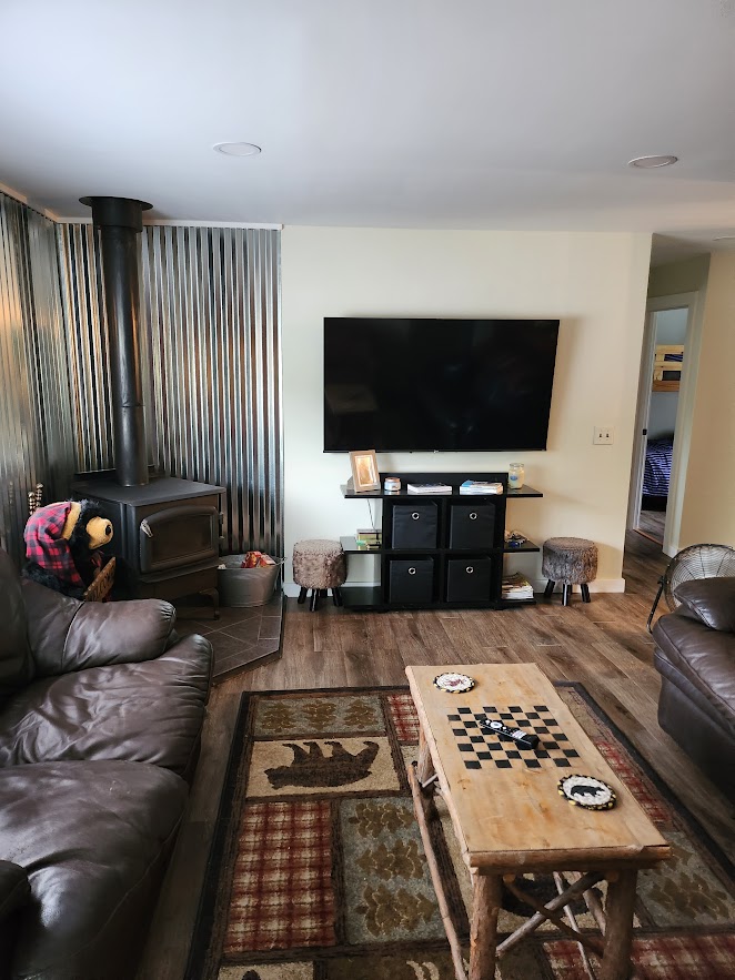 Unsere Berghütte hat ein aktualisiertes modernes Design, das dafür sorgt, dass sich Gäste wie zuhause fühlen und dennoch die Wärme und den rustikalen Charme einer Blockhütte bietet. Unsere Hütte ist der ideale Rückzugsort für Familien, die eine längere Auszeit suchen. Das Hotel liegt im Herzen der White Mountains und bietet deiner Familie einfachen Zugang zum Wandern, Schwimmen, Radfahren, Angeln und vielem mehr. Genieße deinen Morgenkaffee auf der Veranda, koche Hamburger auf der übergroßen Terrasse mit Gasgrill und röste Marshmallows in der Feuerstelle im Hinterhof.