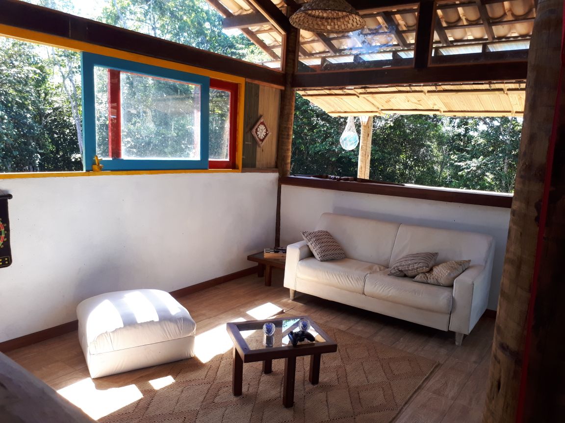 Ein Haus voller Kunst und offen zum Pavillon, mit einem Turm und weitem Blick auf das Meer und die Wälder des südlichen Bahia. Ein Haus, das dir Kunst und Natur mit großem Komfort und Ruhe in Serra Grande bietet. Mitten in einem 25 Hektar großen ländlichen Rückzugsort, 2 km vom Dorf und 4 km vom Conduru Park entfernt, ist dies der ideale Ort zum Lesen, Sport treiben, die Natur betrachten und Kochen. Exklusiv und sicher. Wir haben eine voll ausgestattete Küche und eine große Essterrasse vor dem Pavillon.
