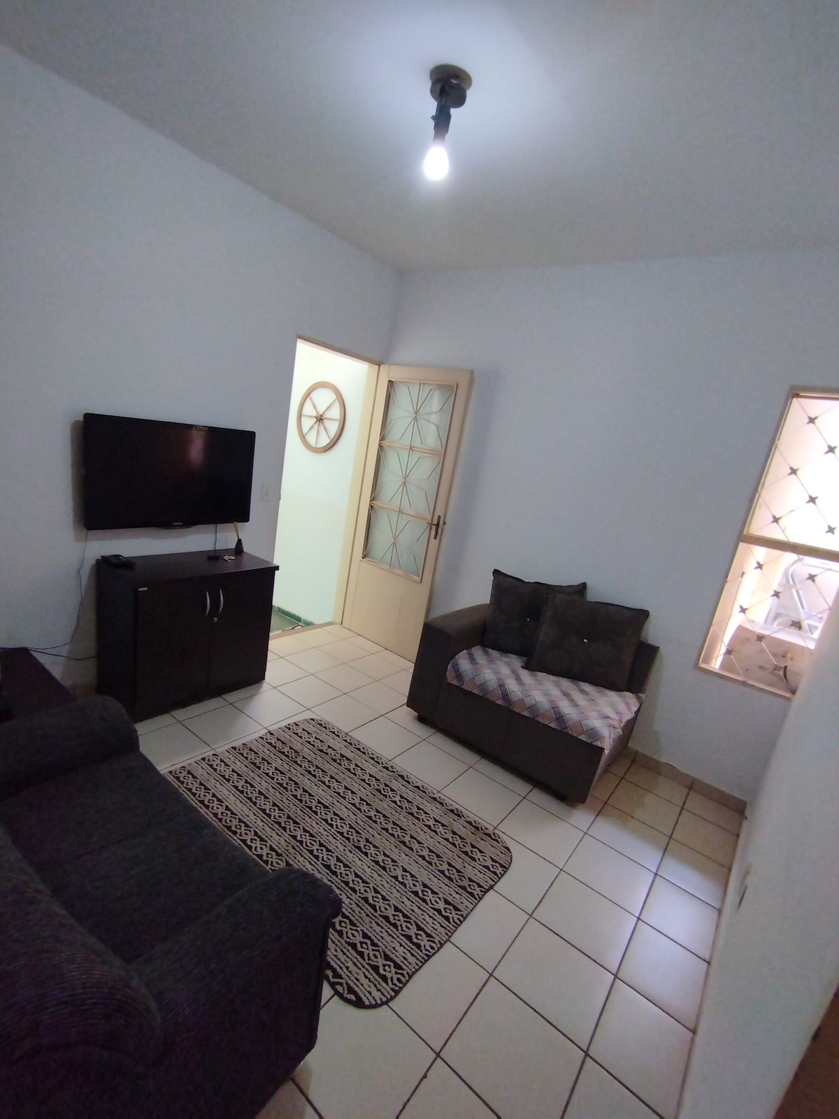 Entspannen Sie sich in diesem ruhigen und stilvollen Raum. Gemütliche Wohnung in der Nähe der Militärkaserne, mit 2 Schlafzimmern, Wohnzimmer, Küche und Bad, im Erdgeschoss!!! Platz für bis zu 5 Personen!!! Enthält 2 Doppelbetten und 1 Doppelmatratze! Perfekt für diejenigen, die einen ruhigen und gemütlichen Ort suchen!!! Deckenventilator im Schlafzimmer und im Wohnzimmer!!! Bettwäsche, Kissen und Decken sind vorhanden! Handtücher stehen nicht zur Verfügung! 110-Volt-Steckdosen!