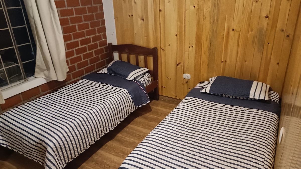 🏡 En La Casa de Edga, sabemos que las fiestas de fin de año y otras celebraciones cercanas merecen un lugar mágico. Por eso, te invitamos a asegurar tu refugio ideal: 2 dormitorios 5 camas: 1 matrimonial + 4 simples, Sala con sofá cama, comedor, TV y WiFi. Cocina equipada, lavandería, baño con agua caliente, patio con parrilla cámaras de seguridad exterior porque no hay estacionamiento interior. Costo adicional para limpieza profesional (opcional). Perfecto para descansar sin sorpresas.
