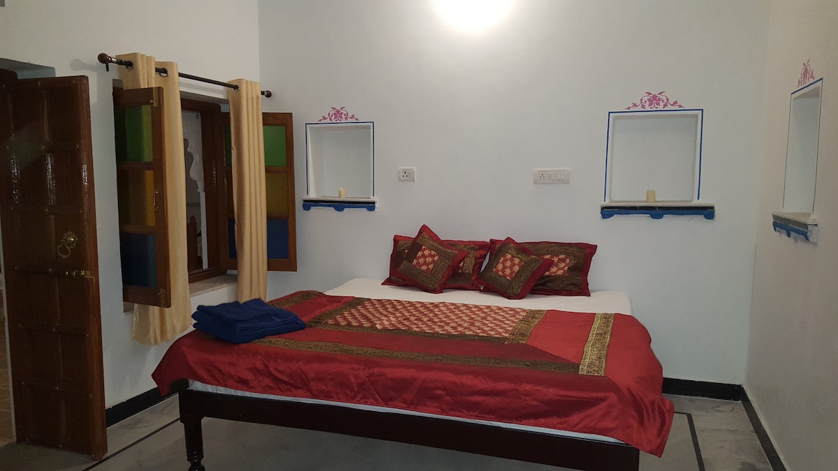 Khamma Ghani! Unser geräumiges Privatzimmer ist ideal für Alleinreisende, Freunde und Familien, die einen komfortablen Aufenthalt im Herzen von Udaipur suchen. Die Lage macht es ganz einfach, die Stadt zu erkunden, wobei die meisten wichtigen Sehenswürdigkeiten nur 15–20 Minuten entfernt sind. Nahe gelegene Sehenswürdigkeiten: • Stadtpalast: 2,6 km • Bahnhof: 1,3 km • Busbahnhof: 1,8 km • Flughafen: 19 km