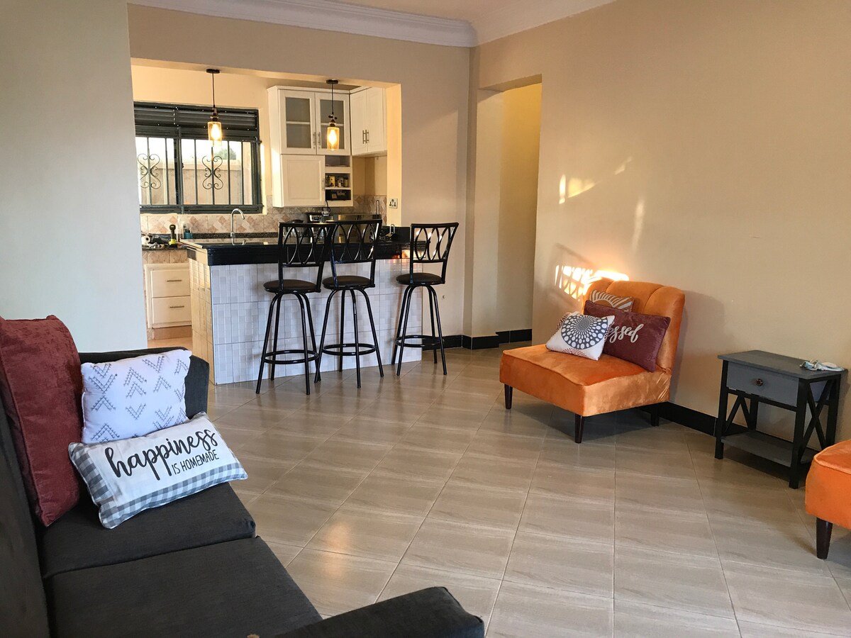 „Eine Oase im geschäftigen Kampala“ Ganzes privates und gemütliches Ferienhaus mit eigener Haustür. Schöne üppige Gärten, komplett mit allem Komfort ausgestattet. Ein friedlicher und ruhiger Rückzugsort in Muyenga Bukasa, einem der grünsten, sichersten und gehobensten Vororte von Kampala, in Reichweite von internationalen Restaurants, Cafés, Bars und Supermärkten. Beliebt bei Expats. 15 Minuten Fahrt vom Stadtzentrum von Kampala, 10 Minuten vom Lake Victoria Speke Resort, der US-Botschaft und der Lepetite Village Gaba Road entfernt.