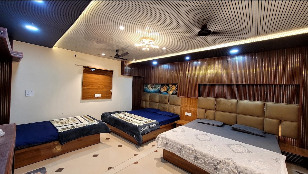 Willkommen in unserem Familien-Retreat - einer geräumigen Oase, perfekt für Gruppen oder Familien, die Komfort und Bequemlichkeit suchen. Diese elegante Etage verfügt über vier gemütliche Doppelschlafzimmer, Badezimmer, Küche und Balkon. Der perfekte Rückzugsort für alle auf einer Pilgerreise in Mahakal. Nur 3 km vom Mahakaleswar Jyotirlinga Mandir entfernt bietet unsere ruhige Unterkunft einen angenehmen Aufenthalt. Unsere Privatunterkunft liegt 2,5 km vom Stadtzentrum entfernt und ist ein idealer Ausgangspunkt, um Ujjains spirituelle Sehenswürdigkeiten zu erkunden.