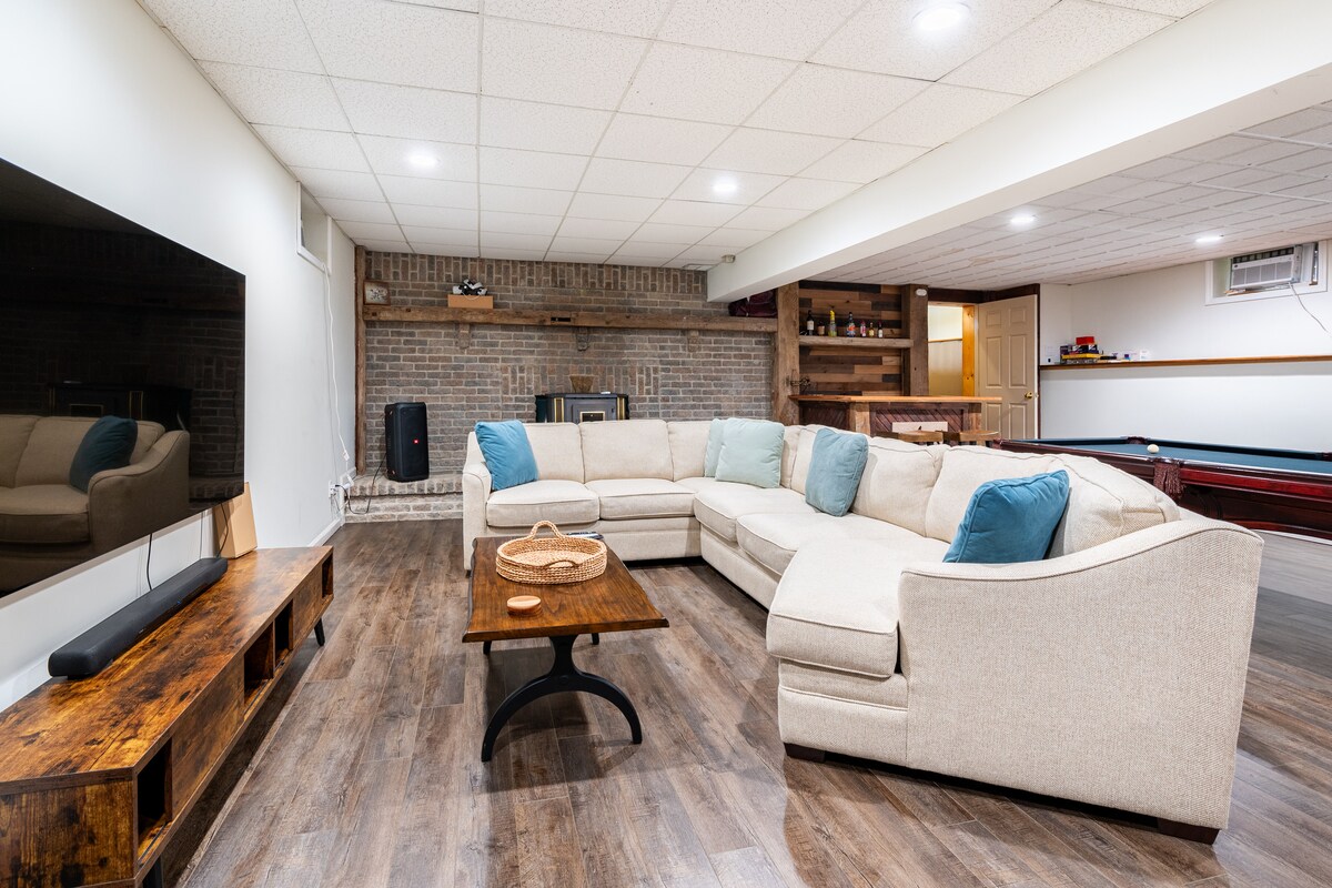 Skiiis N' Tees ist ein 3-Schlafzimmer, 2-Bad, Vier-Jahreszeiten-Urlaub, wo Bergblick und frische Luft Wunder für die Seele wirken. Nur eine kurze Fahrt von NYC entfernt, ist es perfekt für Paare, Familien, Mädchenwochenenden oder Golfreisen für Männer. Diese stilvolle Eigentumswohnung befindet sich neben einem 9-Loch-Golfplatz und ist nur 5 Minuten von den Pisten entfernt. Wandern, Weinproben oder Apfelpflücken – es ist für alle etwas dabei. Ein Hund bleibt gratis. Pack & Play verfügbar. Komm wegen der Aussicht und bleib wegen der Stimmung!