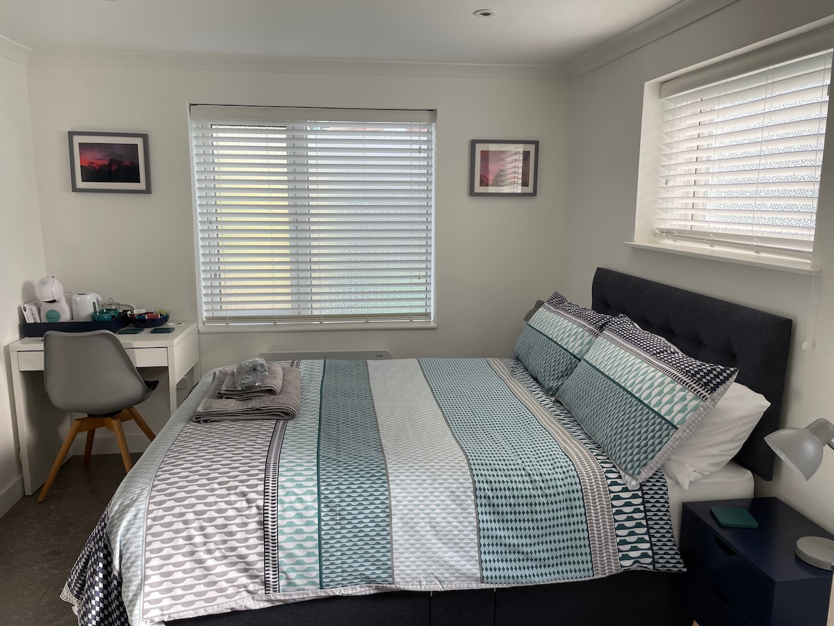 Ein schöner, neu renovierter Anbau, perfekt für 1 oder 2 Gäste in guter Entfernung zum Stadtzentrum. Ein gemütliches, voll funktionsfähiges, unabhängiges Zuhause mit einem Doppelbett, einer Küchenzeile, einem eigenen Badezimmer, einem 32-Zoll-TV, einem beheizten Boden und einem Heizkörper mit einem privaten Eingang. Das Hotel liegt einen 30-minütigen Spaziergang vom Stadtzentrum und dem Brauereiviertel mit seinen vielen Restaurants und Bars, 2 Kinos, Mr Mulligans Adventure Golf und Hollywood Bowl entfernt.
