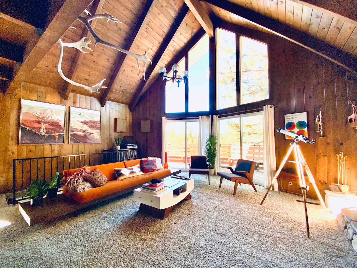 Willkommen in The Den, entworfen von LBL Design Co. Unsere gemütliche Hütte aus den 1960er Jahren wurde komplett renoviert und bietet einen romantischen, stimmungsvollen Rückzugsort. Verfügt über einen frischen Look mit mandelbestrahlten Decken, die waldig und dennoch modern sind, zusammen mit einem privaten Whirlpool. Zentral gelegen zu allem, was du in den San Bernardino Mountains erkunden möchtest. Versammelt euch auf unserer Terrasse für Bier und Gespräche. Röste klebrige S'mores unter einem Sternenhimmel. Und kuschel dich auf unser Samtsofa, während der Kamin vor dir glüht.
