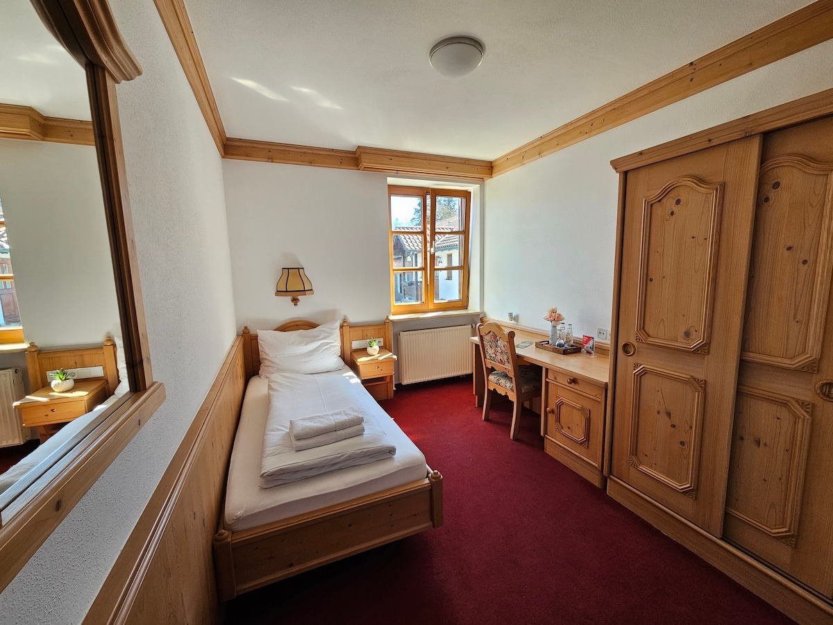 Das Zimmer hat 2 einzelne Betten, eine kleine Sitzgelegenheit mit Tisch und SAT-TV. Es ist mit Bad, Dusche und separaten WC ausgestattet. Es werden Handtücher in klassischer Größe zur Verfügung gestellt, jedoch keine Duschhandtücher. Diese müssten bei Bedarf selbst mitgebracht werden. Unsere Pension liegt im Landkreis München, nur wenige Autominuten von der A99 entfernt – ein idealer Ausgangspunkt für Ziele in und um München.
