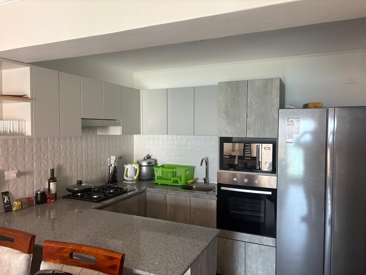 Moderne, voll möblierte Wohnung, ideal für längere Aufenthalte. Mit High-Speed-WLAN, einem 65-Zoll-Smart-TV mit Netflix und Disney+, einer voll ausgestatteten Küche mit Espressomaschine und Wasserfilter, Waschtrockner, Queensize-Bett und einem Balkon. Das Gebäude bietet einen Swimmingpool, einen Fitnessraum und einen Coworking-Bereich. 24/7 Self-Check-in, Smartkey, kostenloser Parkplatz und 24-Stunden-Sicherheitsdienst. Strategisch günstig in San Miguel gelegen, in der Nähe von Universitäten und Einkaufszentren und weniger als 20 Minuten vom Flughafen entfernt.
