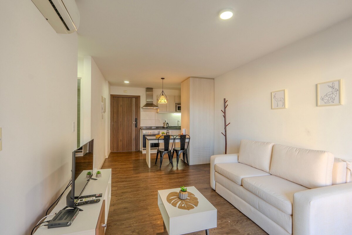 Die Wohnung befindet sich in Pocitos, 4 Blocks vom Strand Pocitos und einen halben Block vom Boulevard España entfernt, am schönsten Ort von Montevideo. Geräumig und hell, warm und modern, komplettes Badezimmer und Küche. HIGH-SPEED-WLAN: 200 Mbit/s Download/30 Mbit/s Upload/500 GIGABYTE. Voll ausgestattet, verfügt über WLAN, Smart-TV, Klimaanlage. Das Gebäude verfügt über eine Waschküche im Erdgeschoss (muss bezahlt werden, da es privat ist). Ideale Unterkunft für Paare und Geschäftsreisende.