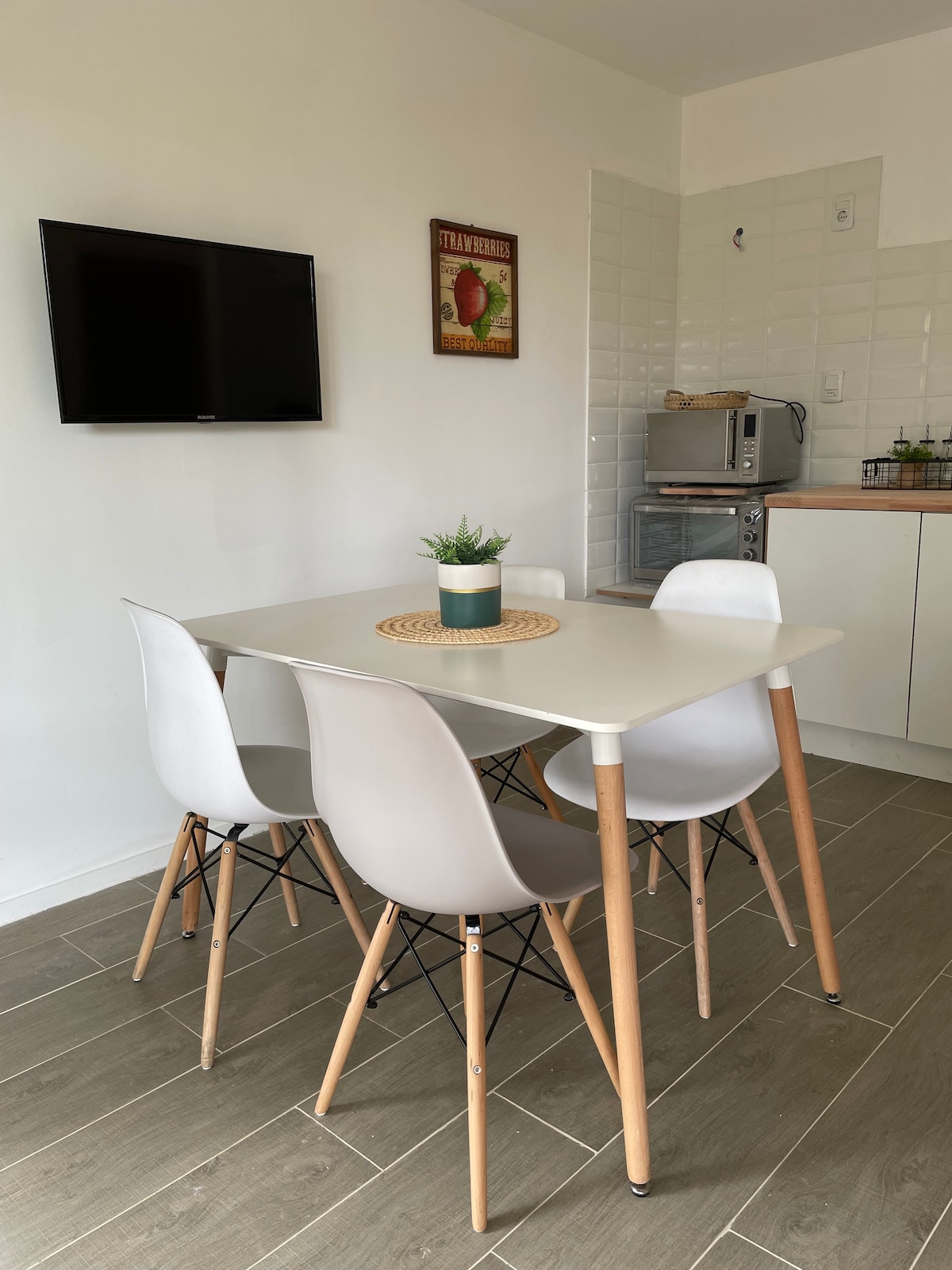 Die Wohnung verfügt über einen Garten zur alleinigen Nutzung. Es teilt sich das Erdgeschoss mit einer anderen ähnlichen Wohnung. 45 m2 IM ERDGESCHOSS (siehe Foto): Wohnzimmer, Küche und integriertes Esszimmer, 1 Schlafzimmer mit eigenem Bad. Ausgang zu einer großen Terrasse und Seitengalerien. Schlafzimmer mit einem Doppelbett und einem großen Kleiderschrank. Küche, Kühlschrank mit Gefrierfach, Elektroherd, Mikrowelle, Elektroofen. Schlafsofa im Wohnbereich High-Speed-WLAN, Smart-TV und 2 Klimaanlagen mit Heiz- und Kühlfunktion. Terrasse und tragbarer Grill.