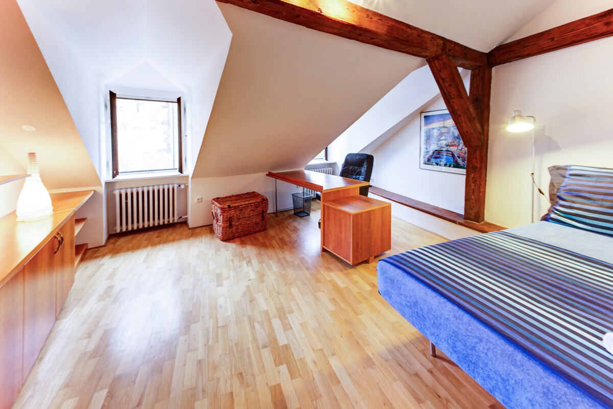 Stilvolles Dachgeschoss im Stadtzentrum mit Arbeitsplatz und Monitor