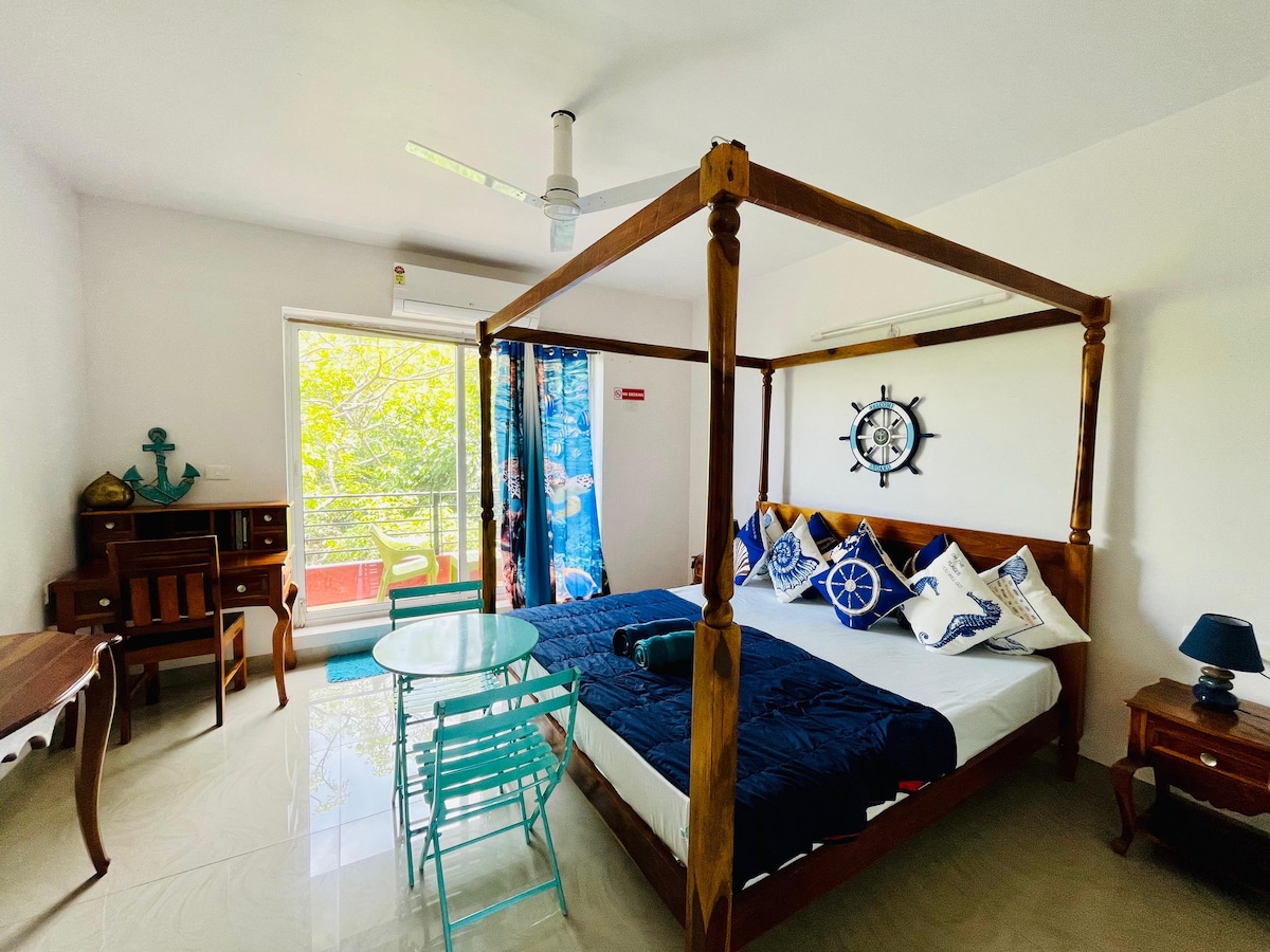 Gemütliche und stilvolle Einzimmerwohnung nur ein paar Minuten vom Strand Palolem, Süd-Goa. Es ist ideal für Familien, Paare und Alleinreisende und verfügt über ein bequemes Kingsize-Bett, ein angeschlossenes Badezimmer, eine Küchenzeile und einen privaten Balkon. Genieße ruhige Morgen, schnelles WLAN, Parkplatz und einfachen Zugang zu Cafés, Geschäften und Strandatmosphäre. Perfekte Mischung aus Komfort und Bequemlichkeit und dein zweites Zuhause.