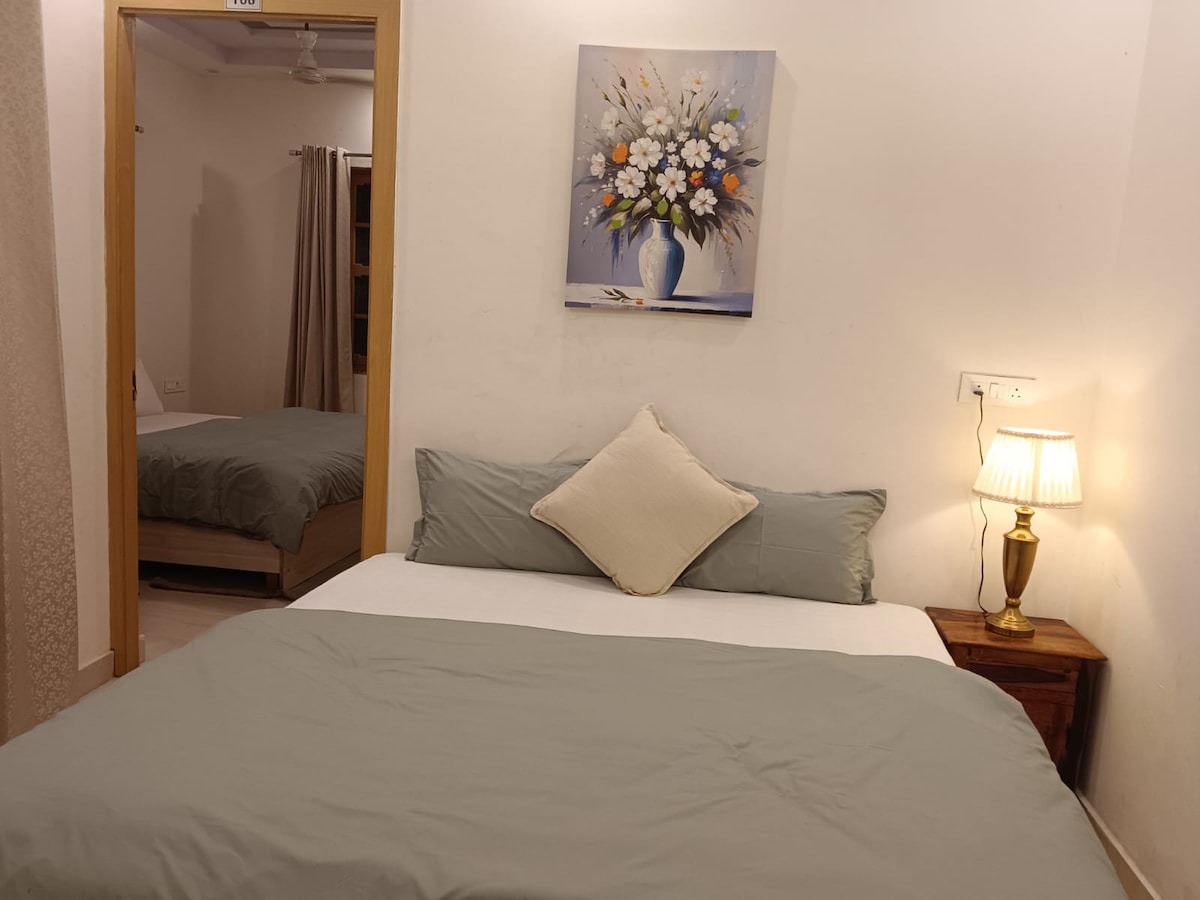 Nur 300 m von Triveni Ghat entfernt🙏, können Sie ein privates 2-Schlafzimmer-Set in einer luxuriösen 4BHK-Villa buchen – perfekt für eine Familie oder eine kleine Gruppe. Dieses 2-Schlafzimmer-Set verfügt über geräumige Schlafzimmer mit ruhigem Blick auf den Ganga🌊, Zugang zu einem ruhigen Garten🌿, einen privaten Tempel im Haus 🛕und eine voll ausgestattete Gemeinschaftsküche und einen Essbereich🍽️. Es verbindet historischen Charme mit modernen Annehmlichkeiten ✨und ist ein gemütlicher Rückzugsort für spirituelle Suchende 🕉️ oder alle, die sich im Herzen von Rishikesh entspannen möchten💫.