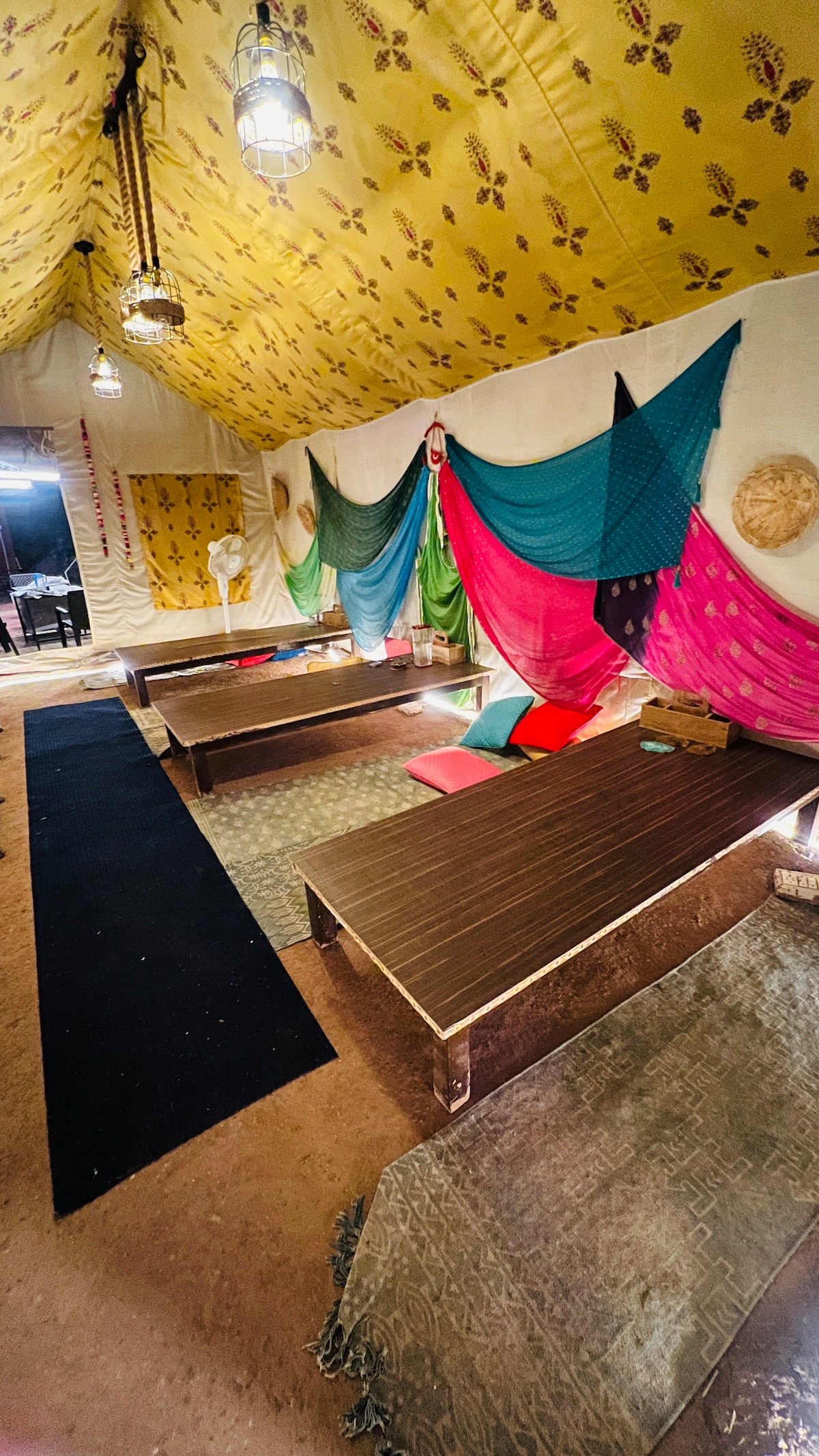 5 luxuriöse Zelte, die so gestaltet sind, dass sie dir den besten Aufenthalt mit modernen Einrichtungen wie kostenlosem WLAN, Tee/Kaffeemaschine/ Klimaanlage usw. bieten. Jedes Zelt hat eine private Veranda mit Blick auf den Pool, den Rasenbereich und die Salbäume. Genieße die Geräusche der Natur, wenn du in diesem einzigartigen Ort übernachtest.