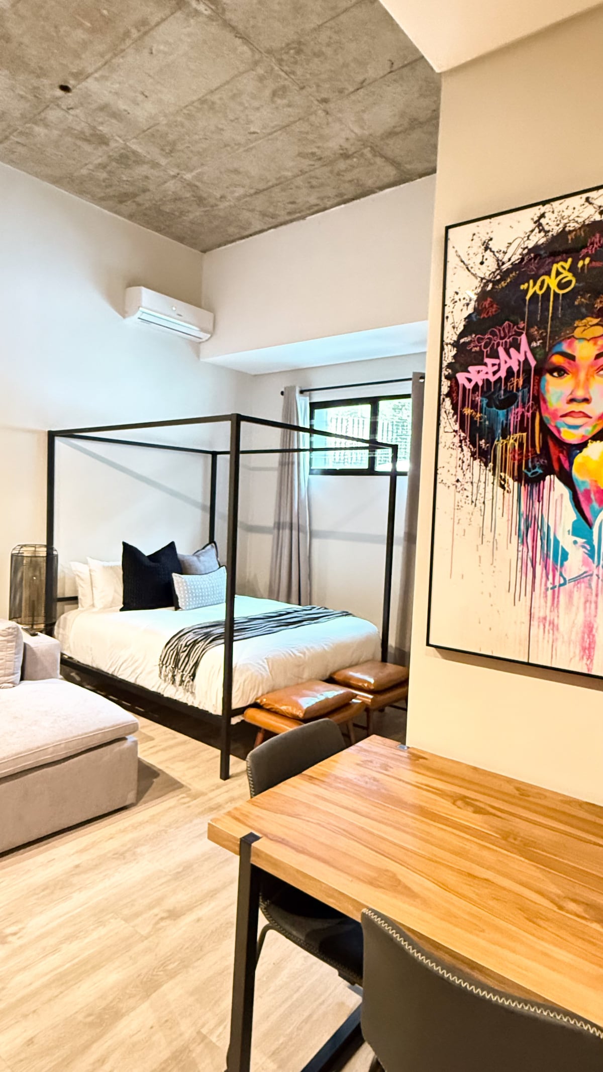 Located in the heart of the Johannesburg City District. The space is fashioned with the elements of a vintage, nostalgic afrocentric lounge, and the wall art, décor, and other bachelor studio pad essentials depict it as an immense reflection suitable for any creative person’s style and likings. With its beginnings in art, Maboneng has evolved into a collaborative hub of culture, business and lifestyle that entices curiosity, encourages exploration and promotes a sense of urban togetherness..