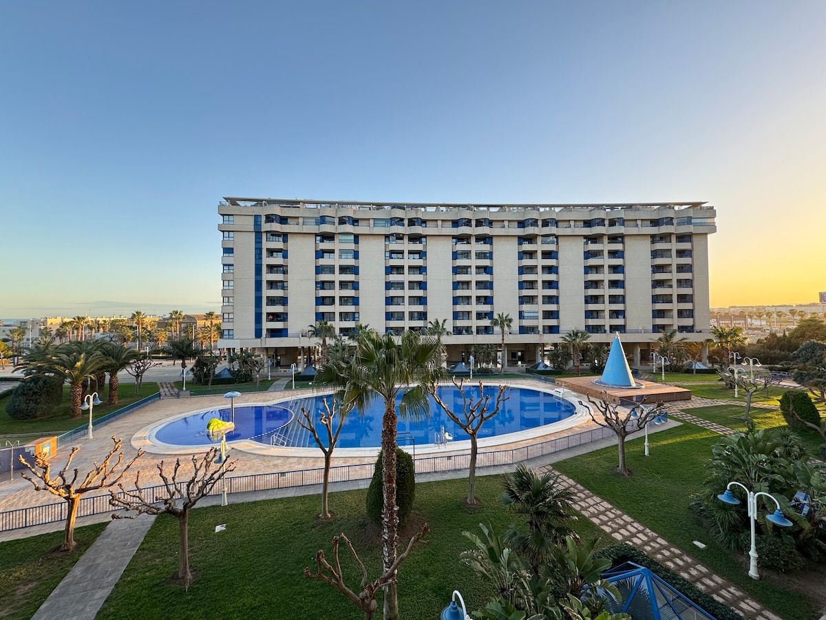 Wohnanlage in Playa Gandia, Pool, Fitnessraum und Arena