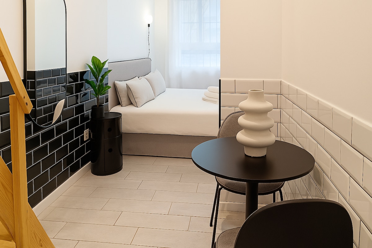 Bezaubernde hüttenartige Unterkunft in einer städtischen Penthouse-Wohnung in Südlage. Sehr luftig mit viel natürlichem Licht. Gemütliche Terrasse, um die Sonne zu genießen und sich abends bei einem Glas Wein zu entspannen. Ein Schlafzimmer mit eigenem Bad. Charmantes Dekor und eine gut ausgestattete Küche. Wohnzimmer mit TV und Netflix, Bluetooth-Lautsprecher und WLAN machen es zu einem zweiten Zuhause. Ob du wegen Kultur, Essen, Sport oder einfach nur zum Reisen kommst, dies ist eine großartige Wahl!