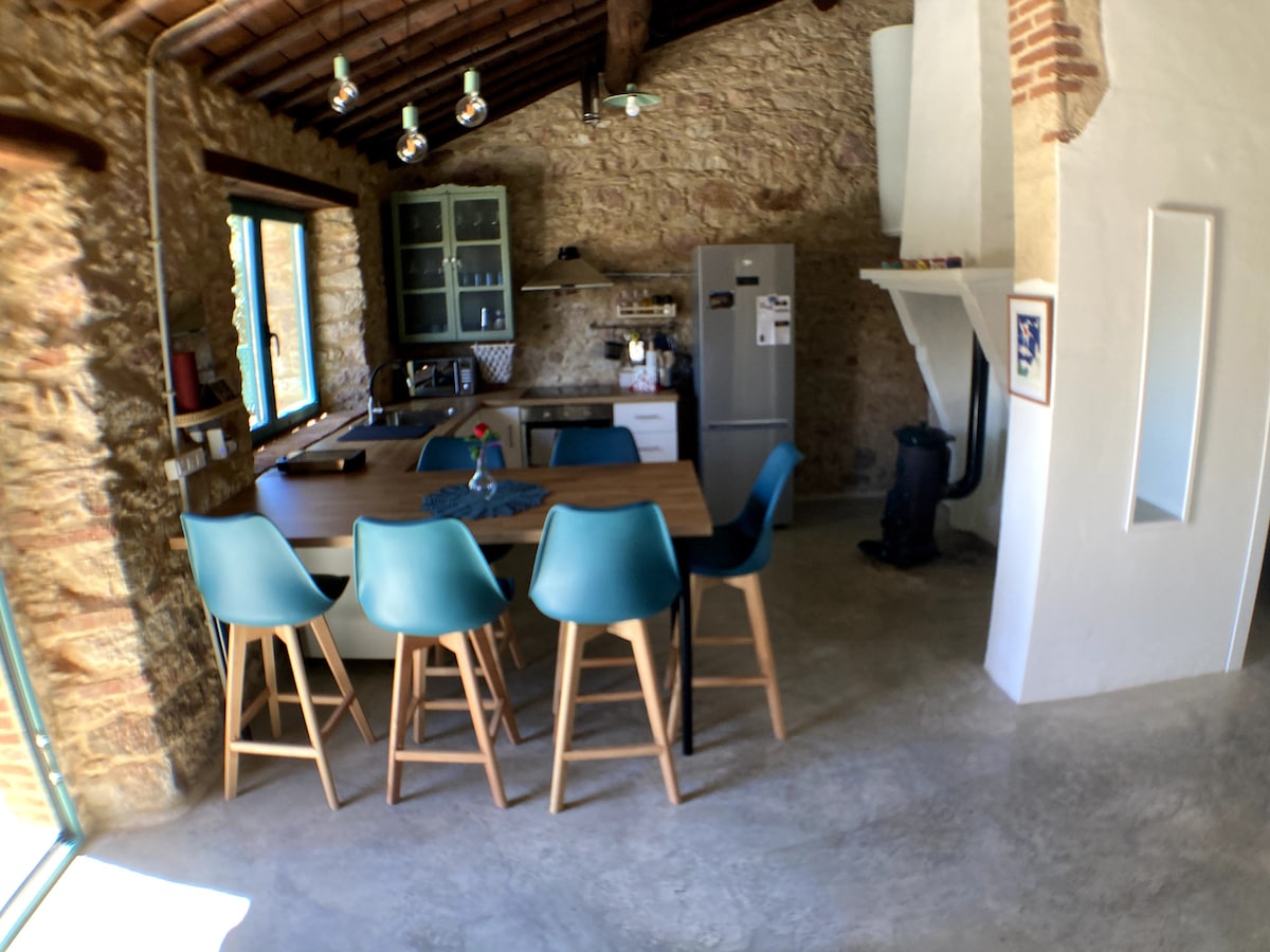 Freistehendes Haus, ideal für Paare und kleine Familien. Parkplatz und privater Garten, nicht geteilt, Veranda und Grill Es ist kein Zimmer, es ist ein schönes Ferienhaus. Offenes Wohnzimmer. Wohnbereich mit Blick auf den Holzkamin und Smart-TV, Esszimmer mit integrierter Küche, Bad, Doppelwaschbecken und schönes Schlafzimmer mit XXL-Bett. In der Nähe der Ausfahrt 375 der A66. Ideale Erholung zwischen Norden und Süden Fragen Sie nach, wenn Sie mit einem Haustier kommen. Der Pool ist 100 Meter entfernt und wird gemeinsam genutzt