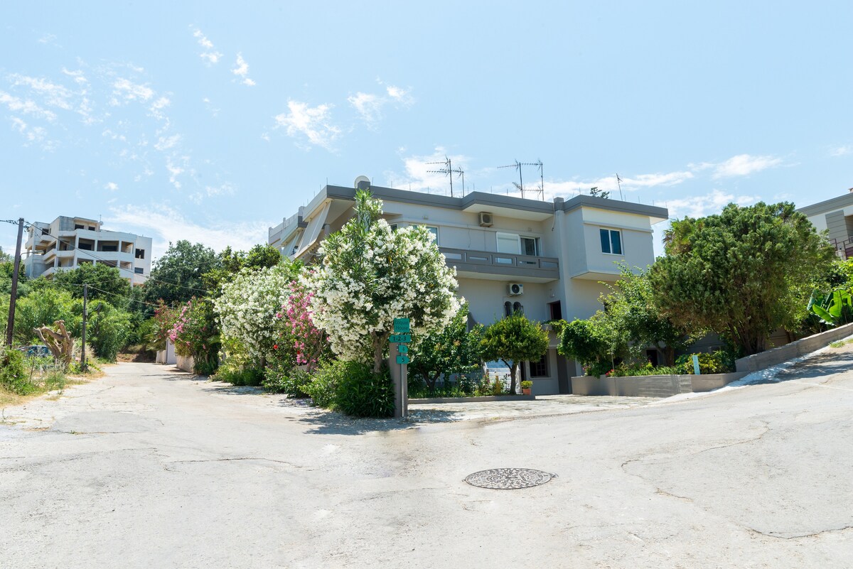 Komplett renoviertes Badezimmer (Januar 2026) Einfache Dekoration, komfortable Räume, großer Balkon, atemberaubende Aussicht, in der ruhigen Gegend des historischen Halepa an der Straße, die den Flughafen und die Stadt Chania verbindet. Nur 3 km von der Altstadt von Chania und 9 km vom Flughafen entfernt. Bushaltestelle vor dem Eingang des Mehrfamilienhauses. Großer Supermarkt in 50 Metern.