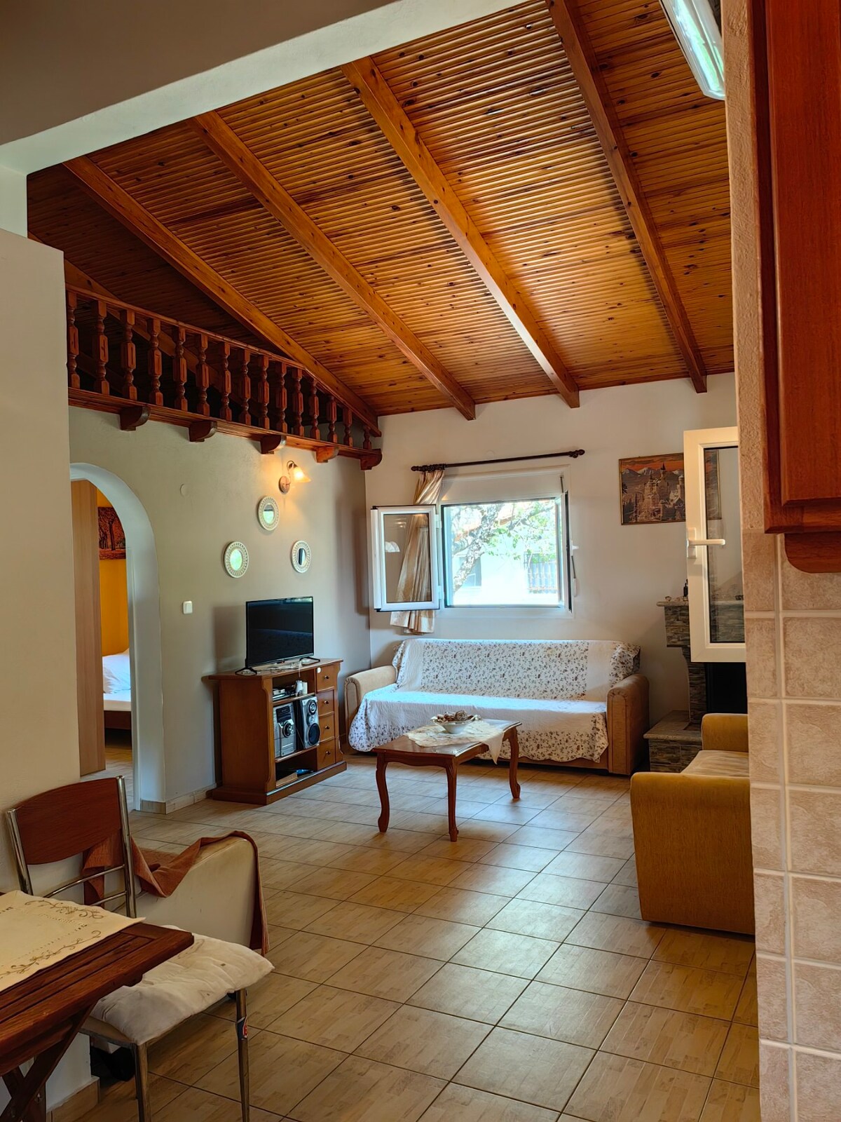 The stone house is at the edge of a deserted village of the 18th century, Paleohori (Old Village), built at 1930 and restored at 2005, in a land of 3.000 square meters. Located on a hill of mount Arakinthos in Aetolia, at a height of 250m., with a unique magic view to the biggest natural lake of Greece, Trihonida. Is suitable for people who looking for serenity, privacy, chill out and take pleasure from the nature. "True paradises, are the paradises that have been lost" -M. Proust-