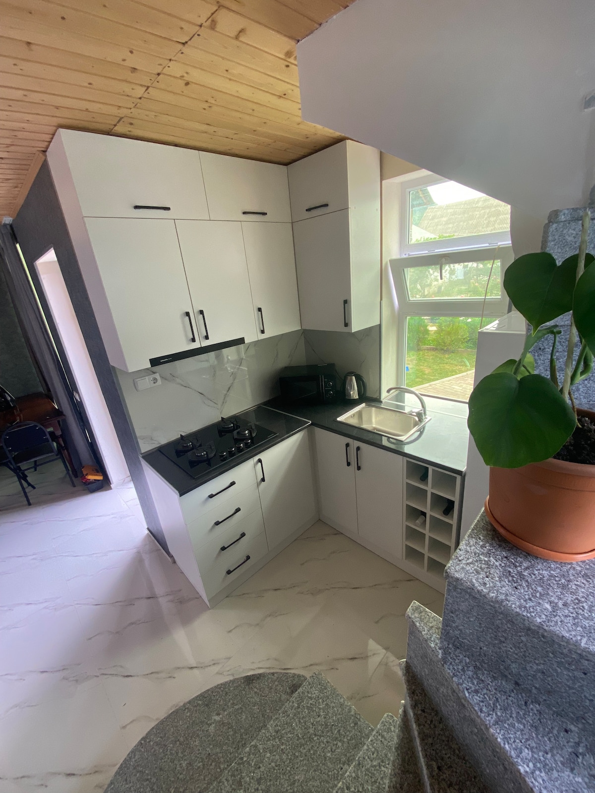 Forget your worries in this spacious and serene space. Located on top of mountain, in peaceful neighbourhood of borjomi 3 kilometers from central park and 2.3km from town center. Family owned house. 3rd floor with seperate entrance to the loft.