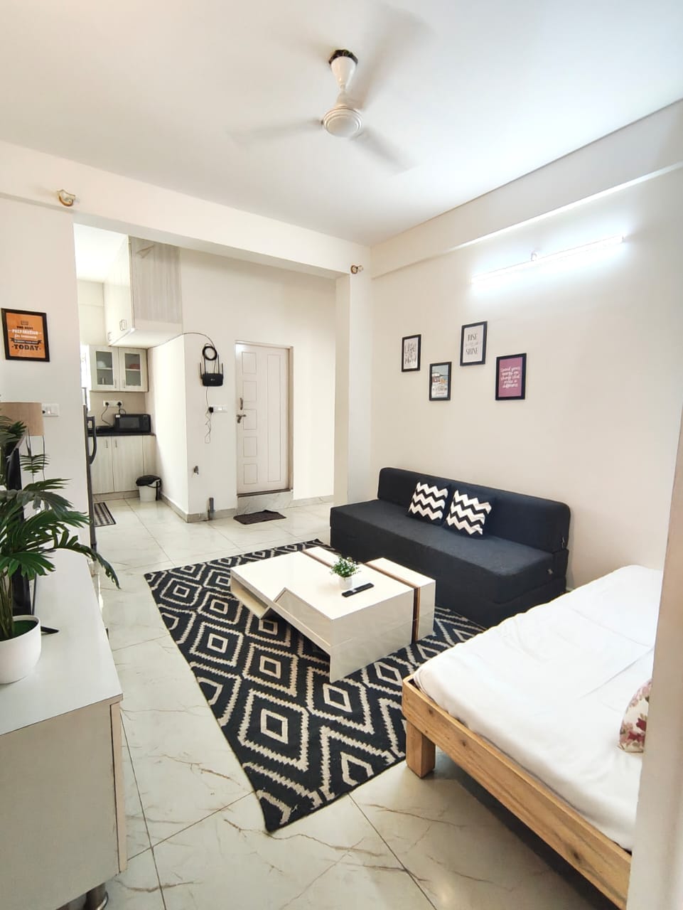 Nestled in the heart of Whitefield, surrounded by lush greenery, our premium 1 BHK apartments are meticulously designed to offer high-quality stay experience and extreme comfort. We have used wakefit 10" memory foam mattresses in bed room and amoeba sofa cum bed in the hall, to offer ultimate sleep quality and back support. We designed our kitchen spaces with modern kitchen utensils - including mini bar set. Other amenities include 100 Mbps WIFI, proximity to the Metro station, and IT hubs.