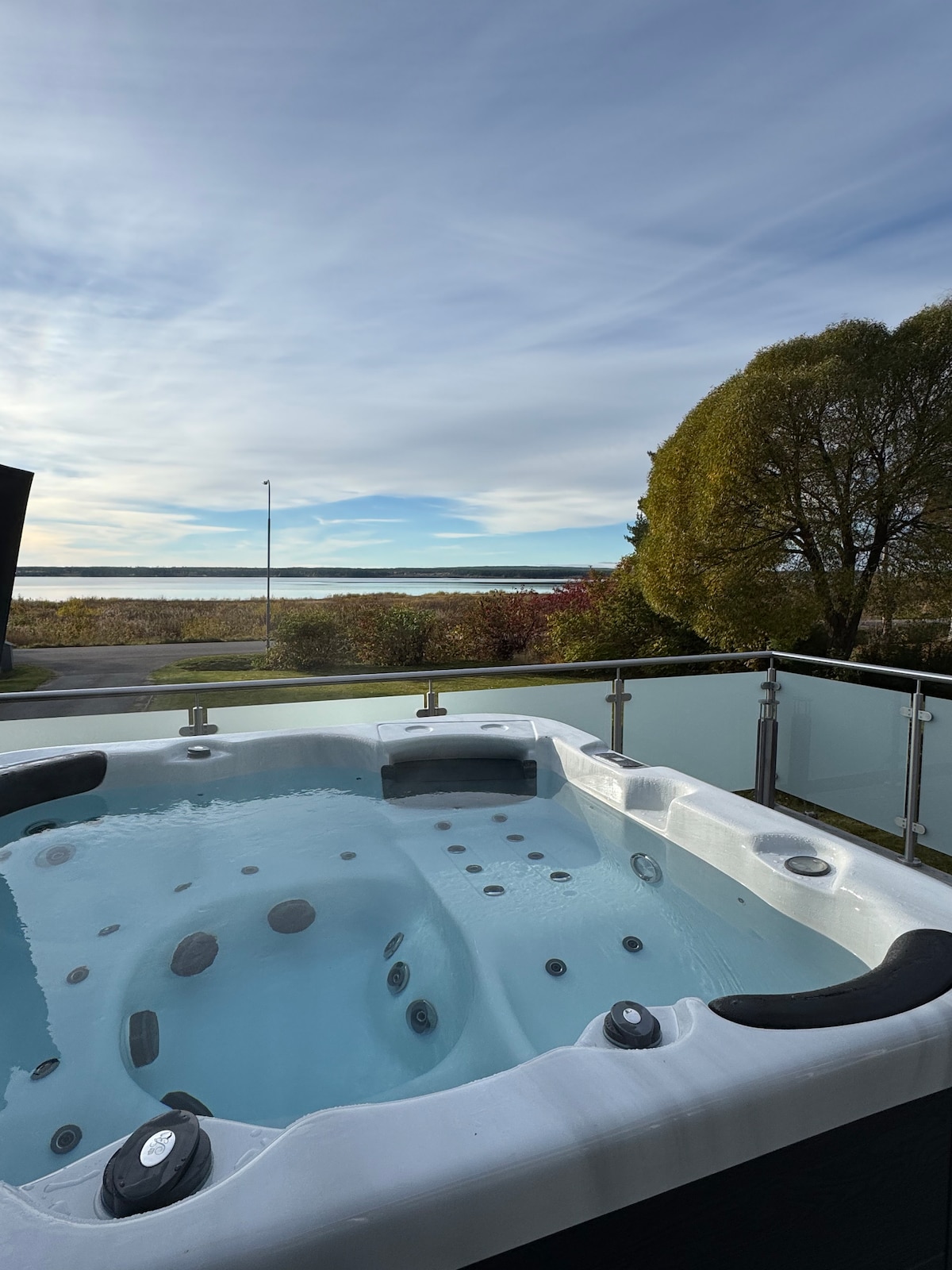 Moderne Villa mit Blick aufs Wasser und Whirlpool