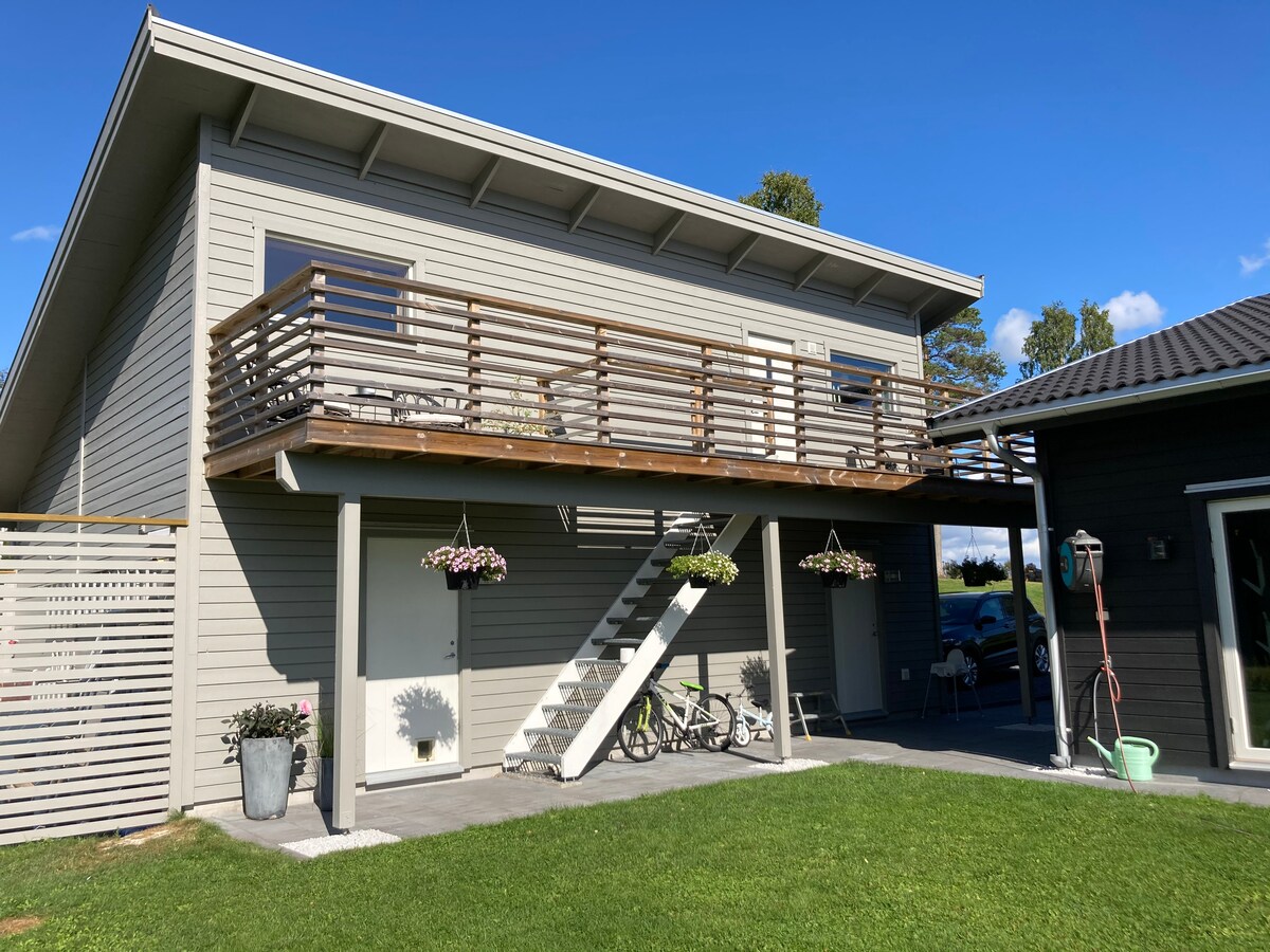 Ein großes Haus mit platzierter Küche und brandneuen Geräten Der Fluss Ljungan ist in der Nähe Viel Spaß mit der Familie an diesem stilvollen Ort. Internet mit Glasfaser und hoher Geschwindigkeit frisch renoviert mit neuen Fenstern und neuen Türen Neue Heizung mit starker Wärmepumpe Das Erdgeschoss hat zwei überdachte Veranden und die obere Etage hat einen Balkon