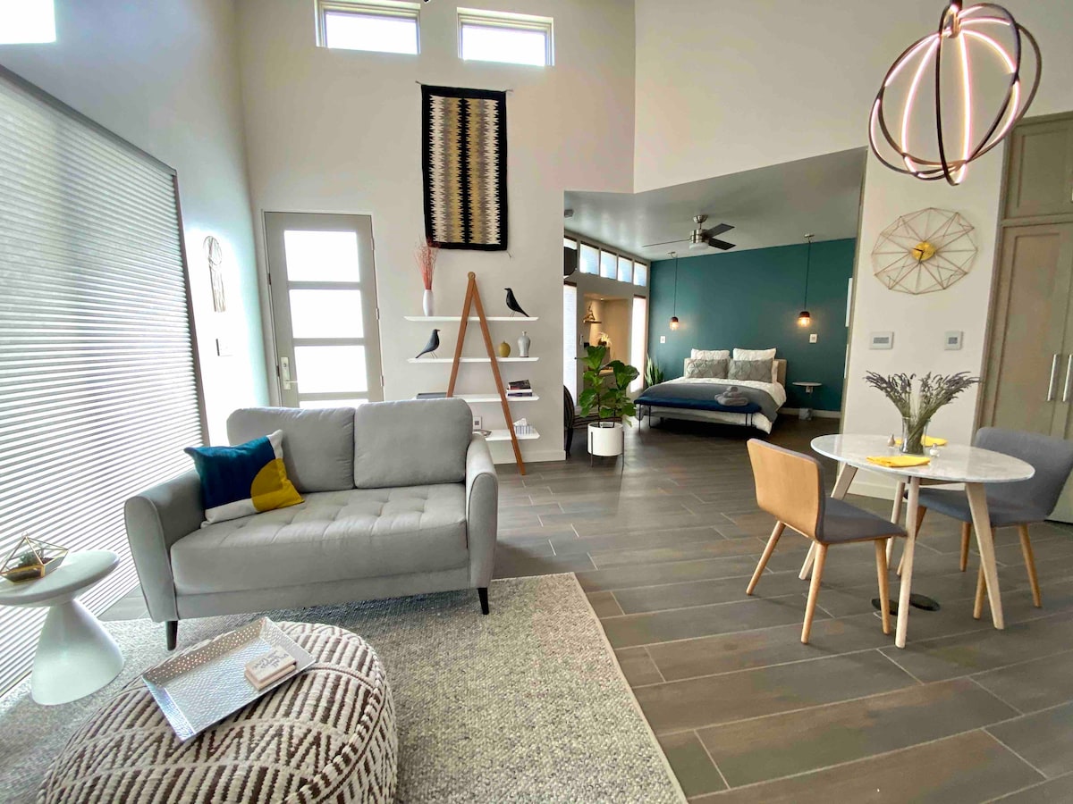 DIE UNTERKUNFT: - Einwandfrei restauriertes Studio - Private Terrasse - Makellose Küchenzeile mit Spüle, Kühlschrank und Mikrowelle - glänzende Hartholzböden - lichtdurchflutet mit 10 Fuß hohen Decken - Designer-Badezimmer - 100 % Baumwolle, Deluxe-Bettwäsche, Kissenauswahl DIE NACHBARSCHAFT: - Lage, Lage, Lage!!! - ABQ's Happening EDO District - Zu Fuß zu tollen Restaurants & der Innenstadt - Lovelace & Presbyterian Krankenhäuser sind in der Nähe - In der Nähe des Bahnhofs Rail Runner - Nur wenige Gehminuten vom Kongresszentrum entfernt - Eine Meile zur UNM