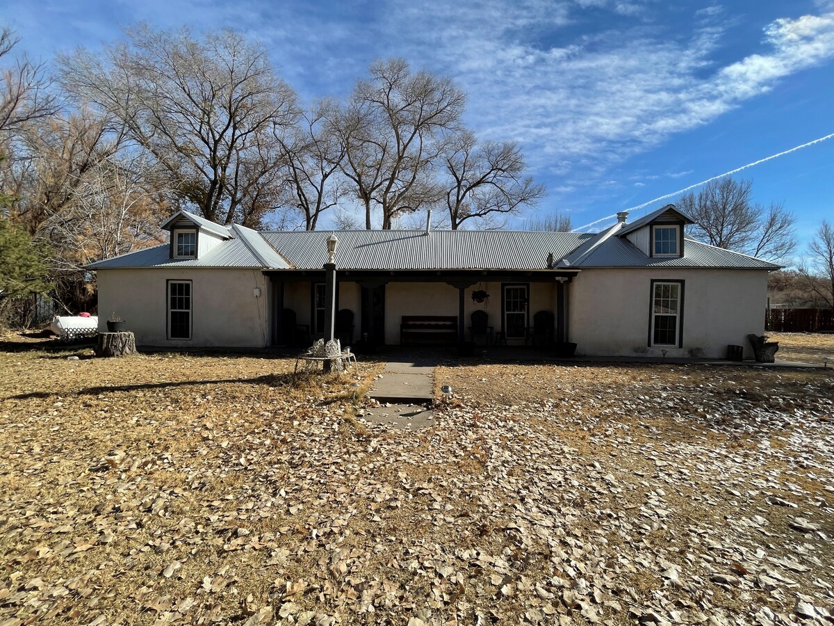 Bien Venidos (Willkommen) in diesem über 100 Jahre alten Haus im neuen mexikanischen Teritorial-Stil, eingebettet in die Baumwollhölzer im Bosque (Wald) am Ufer des Rio Grande, nur 34 Meilen südlich von Albuquerque, New Mexico. Das mittlere Rio Grande Tal erlebt die Freude aller vier Jahreszeiten für ganzjährige Besuche. Genieße die Ruhe und den Charme des Land-/Bauernhoflebens mit frischer Luft und den friedlichen Klängen der Natur um dich herum, einschließlich Wanderwegen entlang der nur wenige Schritte entfernten Moschee.