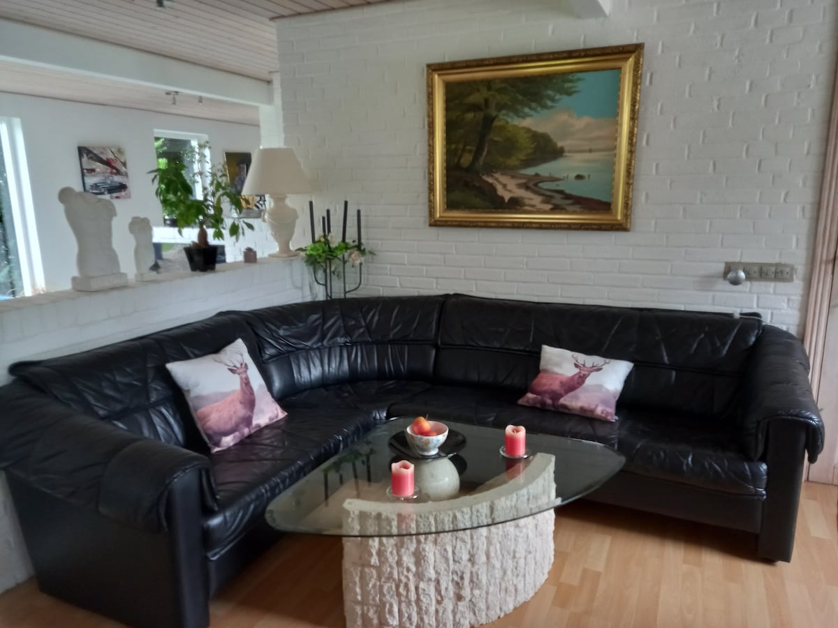 Großes, neu renoviertes Ferienhaus in malerischer Umgebung in der Nähe von Sehenswürdigkeiten und Attraktionen. Das Haus ist gut ausgestattet und befindet sich auf einem großen Grundstück in der Nähe von Wald und Naturpfaden zum Wandern und Laufen. Die Einrichtung ist hell und komfortabel mit vielen Aktivitäten für Kinder und Erwachsene. Die größten Sehenswürdigkeiten der Region sind in kurzer Zeit mit dem Auto zu erreichen: - Legoland, Lalandia, Wow Park, Legohouse, 15 Minuten - Flughafen, 20 Minuten Wir wohnen selbst nur wenige Kilometer entfernt und wünschen Ihnen einen angenehmen Aufenthalt!
