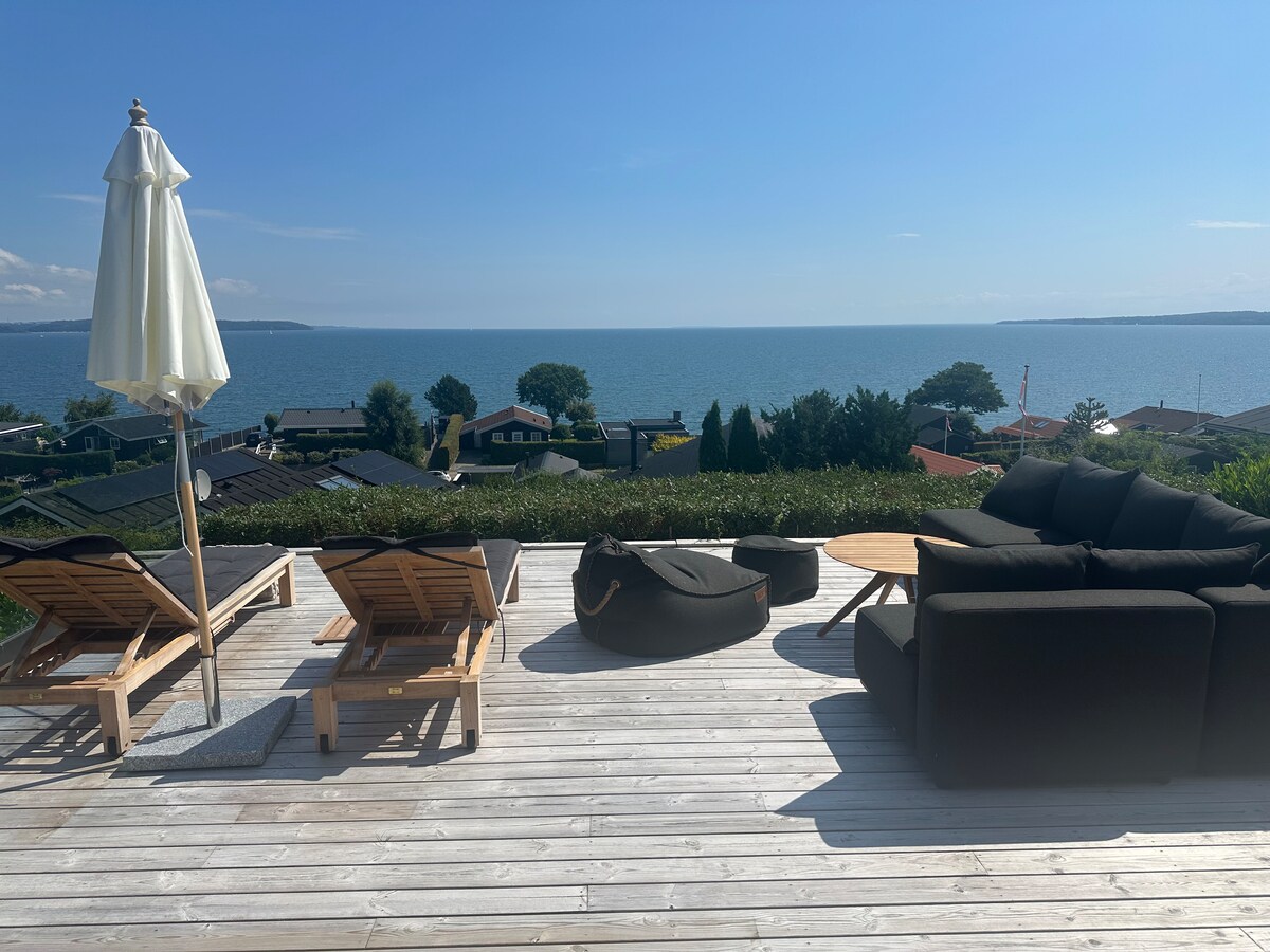 Willkommen in unserem schönen Sommerhaus, das sich in der ersten Reihe am Vejle Fjord mit einem fantastischen Panoramablick auf das Wasser befindet. Das Haus verfügt über ein großes Wohnzimmer mit einem Holzofen, zwei Schlafzimmer und ein kleines Loft. Es gibt eine große Terrasse, auf der du den ungestörten Blick auf den Fjord genießen kannst. Es gibt direkten Zugang zum Wasser über eine Treppe, die hinunter zu einem Steg führt. Unten am Wasser findest du eine weitere Terrasse, perfekt für deinen morgendlichen Kaffee in der Morgensonne nach einem erfrischenden Bad.