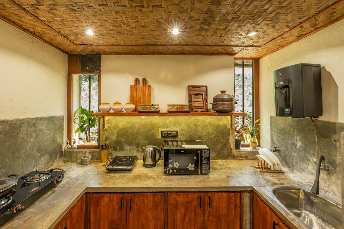 Diese Villa „IKSHAA®“ mit privatem Swimmingpool ist eine der abgelegensten und romantischsten Villen, die Luxus mit rustikaler Schönheit verbindet! Es ist eine eigenständige Villa, die Exklusivität und absolute Privatsphäre verkörpert. Das Grün und der Wald rundherum sind charmant und doch ist sie nur eine 20-minütige Fahrt vom Flughafen Goa oder von den nächsten Stränden von Süd-Goa entfernt. Du wirst keine Probleme haben, dich hier bei IKSHAA® wie zu Hause zu fühlen!