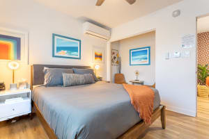 Ein separater Eingang ist ein Portal zu einem luxuriösen, unabhängigen, modernen Ferienhaus in einem abgeschiedenen, ummauerten Garten. Schiebetüren aus Glas bieten einen Blick auf den Lilienteich und Kolibris. Das von Bäumen beschattete Schlafzimmer verfügt über Korkböden für ruhigen Komfort und eine verschiebbare Holzpaneeltür. Das Badezimmer verfügt über eine Dusche mit bodentiefen, mattierten Fenstern und eine private Terrasse auf der Rückseite. Diese moderne, zeitgenössische Suite verfügt über lebendige Farben und Kunstwerke. HEPA-LUFTFILTERUNG 24 STUNDEN.