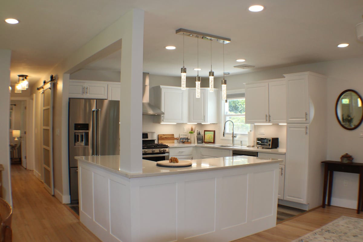 Eine originale Hütte im Candlewood-Stil. Das Haus wurde renoviert, um allen modernen Komfort zu bieten. Sie verfügt über einen großen Kamin im Wohnzimmer, eine Veranda mit Blick auf den See, eine Zentralheizung und eine Klimaanlage sowie eine voll ausgestattete Kochküche. Es befindet sich im nördlichsten Teil des Candlewood Lake mit direktem, privatem Wasserzugang vom Ufer oder vom Dock aus. Ein Schaumstoff-Lilienkissen, zwei SUP und zwei aufblasbare Zwei-Personen-Kajaks stehen vom 1. Mai bis 1. November zur Verfügung.