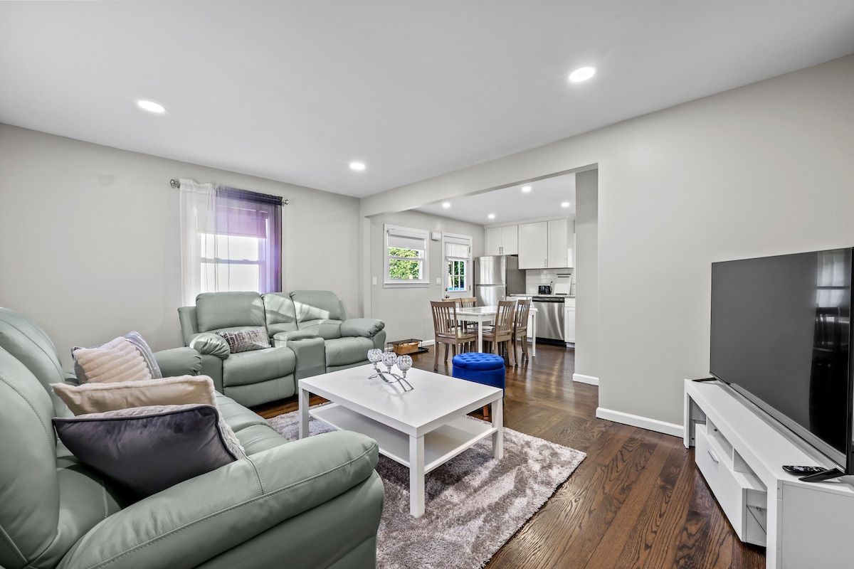 Vergiss deine Sorgen in dieser geräumigen und ruhigen Unterkunft mit Platz für 8 Personen. Genieße die gesamte erste Etage und es gibt keine gemeinsam genutzten Räume. Entspanne dich im Hinterhof oder auf der Veranda. 2 komplette Badezimmer stehen dir zum Entspannen und Genießen zur Verfügung. Es gibt ein frisch renoviertes Badezimmer im Hauptschlafzimmer mit begehbarer Dusche und eine Badewanne im 2. Badezimmer. Die voll ausgestattete Küche wartet auf deine Inspiration. Viele Einkaufsmöglichkeiten erwarten dich und alle Geschäfte sind innerhalb von 10 Minuten von dir entfernt. BDL ist 20 min entfernt,