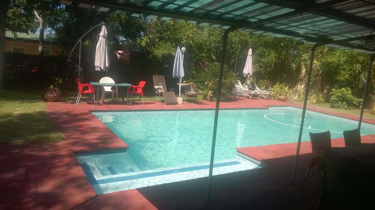 The room is self contained with tea and coffee making facilities and a mini bar fridge. The room has a bathroom and a mosquito net. The lounge area which is shared with other guests is spacious and sliding doors open up to a terrace with a view of the swimming pool. The garden has lawn and is very tranquil and relaxing. There is secure parking on site. Check in is between10.00 and 17.00hrs.Special arrangements need to be made for late check in.