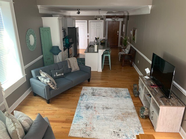 Dieser einzigartige Ort hat einen ganz eigenen Stil. Dies ist ein Studio-Loft mit einem Bett im Herzen der historischen Innenstadt von Vidalia. Fühle dich in diesem geräumigen Zimmer mit Kingsize-Bett, Fernseher, Zweiersofa, Sessel mit Hocker, Küchenzeile, Küchentisch und mehr wie zu Hause. Günstig gelegen zu mehreren Restaurants, Boutiquen, einem Friseurladen, Theater und anderen kleinen Unternehmen. Genieße eine warme Tasse Kaffee oder dein Lieblings-Mischgetränk aus der Minibar direkt zur Hand. Entspann dich und genieße es!