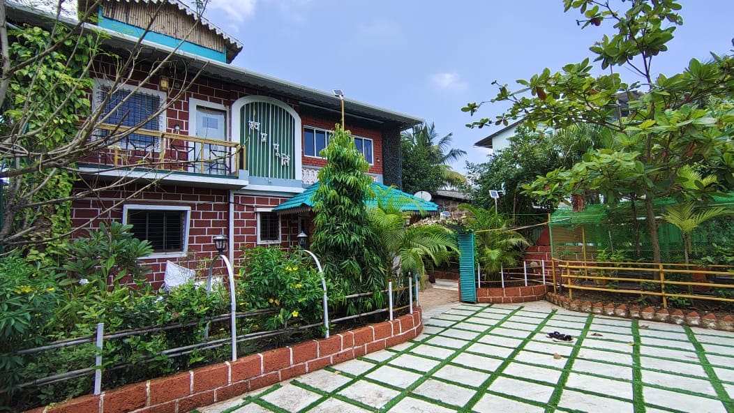 Der Bungalow, der auf einem 4 Hektar großen Obstgarten im malerischen Konkan gebaut wurde, ist ein perfekter Kurzurlaub für Familie und Freunde oder ein ruhiger Ort, um von zu Hause aus mit einem BSNL-Netzwerk zu arbeiten. Der Flughafen Sindhudurg-Chipi und die Touristenattraktionen entfernt. Lerne die Natur in einem entspannten Tempo kennen. Genieße das grüne Grün im Auge. Wache mit dem Ruf der Vögel auf, gehe zur Flussseite oder winke zu den Kühen, die vorbeigehen, um zu grasen. Entspanne dich auf Hängematten oder entspanne dich in einem Tauchbecken. Kinder werden die Natur lieben. Herzlich willkommen