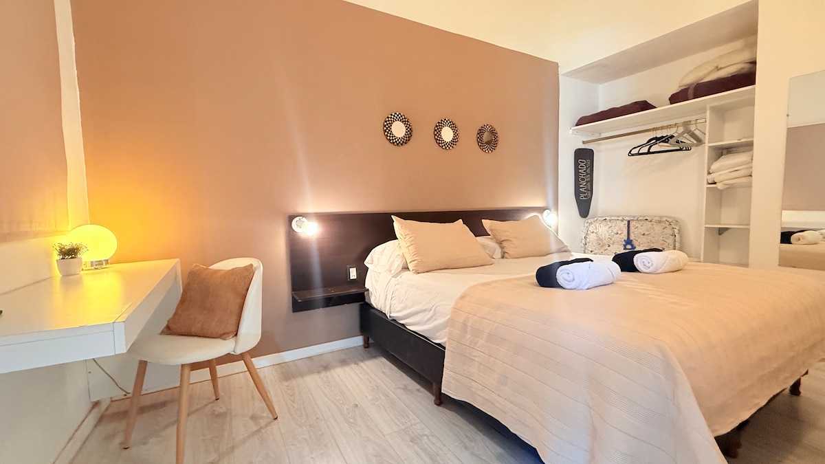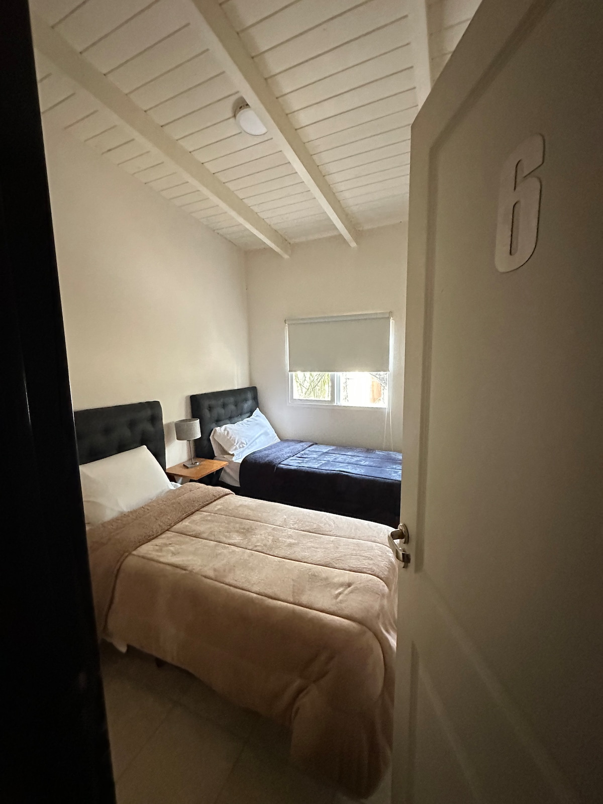 Entspannen Sie sich in diesem ruhigen und eleganten Raum. Gesamte Wohnung, 1 Schlafzimmer mit Doppelbett, 1 Zustellbett im Wohnzimmer. Wohnküche und Esszimmer in offenem Konzept. Zoniertes Badezimmer. Privater Innengarten mit Rasen und Schatten. Eigene Garage. Maximale Kapazität 3 Personen. Strategische Lage: direkter Zugang zur Umgehungsstraße, die mit mehreren touristischen Orten verbunden ist (Carlos Paz, Alta Gracia, Jesús María, Cosquín...Nationale Routen).