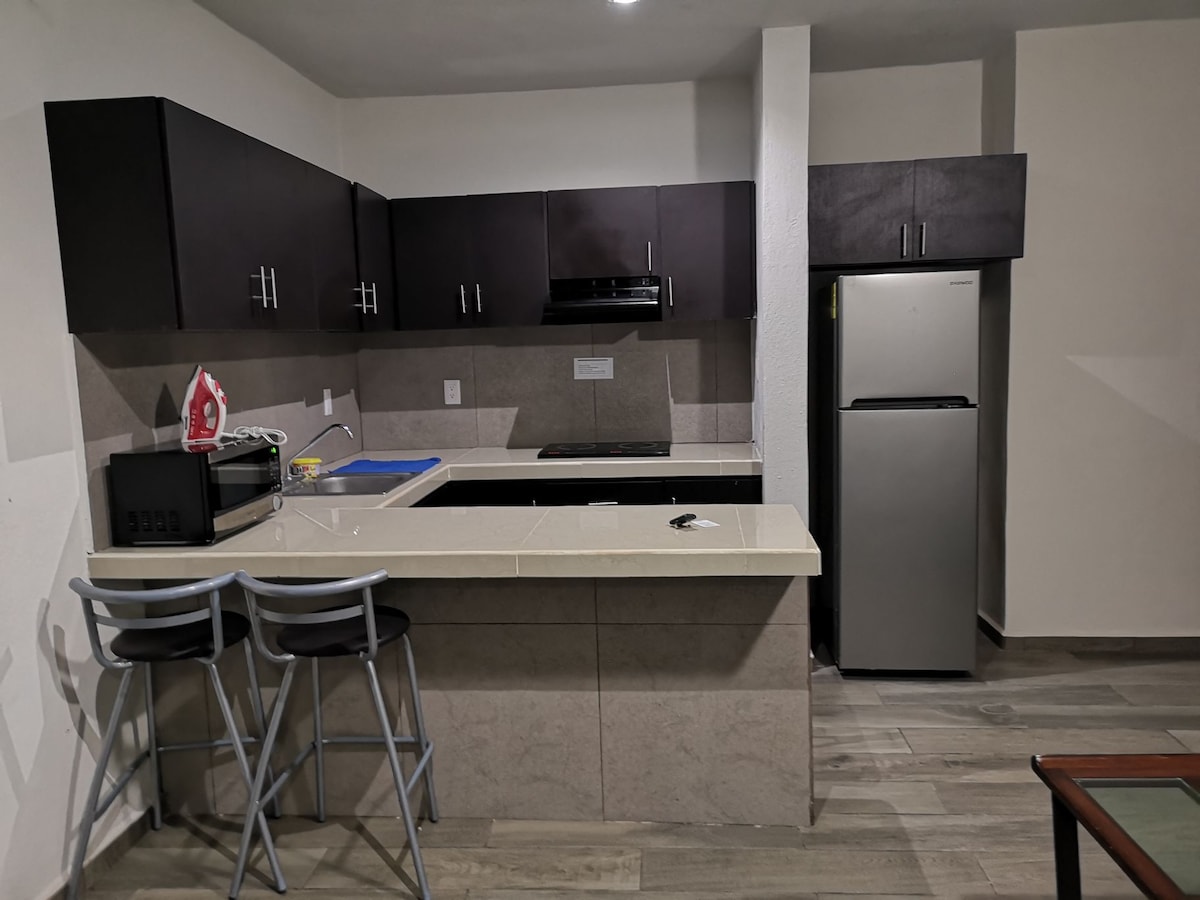 Komplett private Wohnung. Alles in der Nähe, mit dem Auto oder öffentlichen Verkehrsmitteln, wir sind 5 Minuten vom Universitätskrankenhaus, den Bezirksgerichten, der Universität von Colima entfernt. 50 Meter vom Haupteingang der Sportanlage Morelos entfernt.