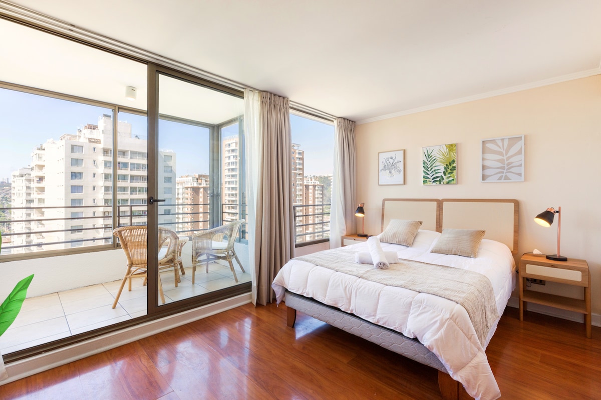 Dieser Ort hat eine strategische Lage - es wird sehr einfach sein, deinen Besuch zu planen! Willkommen in dieser schönen, ruhigen und zentral gelegenen Wohnung, die für jeden Geschmack geeignet ist! Du kannst zum Viña del Mar Casino laufen, nur wenige Minuten vom Strand und Einkaufszentren entfernt, und nur wenige Schritte von den besten Restaurants, Cafés, Pubs und Geschäften entfernt. Raum mit einer Kapazität für 4 Personen, es verfügt über 2 Schlafzimmer und 2 Badezimmer, beide en suite und mit Zugang zur großen Terrasse mit unglaublichem Meerblick.