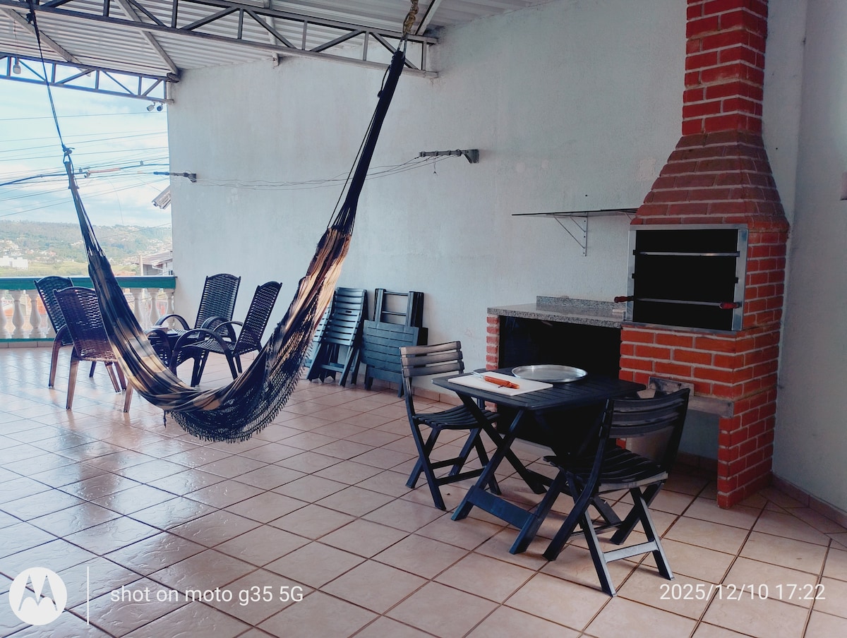 Geräumiges und luftiges Haus, ideal für diejenigen, die Komfort und Ruhe suchen. Es verfügt über ein elektronisches Tor, Sicherheitskameras, eine Garage und einen privilegierten Blick auf die Stadt. • Großer, überdachter Außenbereich mit Tisch, Stühlen, Grill, Hängematte, Waschbecken und Utensilien • 1 Schlafzimmer mit Doppelbett, zusätzlicher Doppelmatratze und Ventilator • Zimmer mit Fernseher (Netflix und Globoplay) • Badezimmer • Voll ausgestattete Küche mit Utensilien, Geräten
