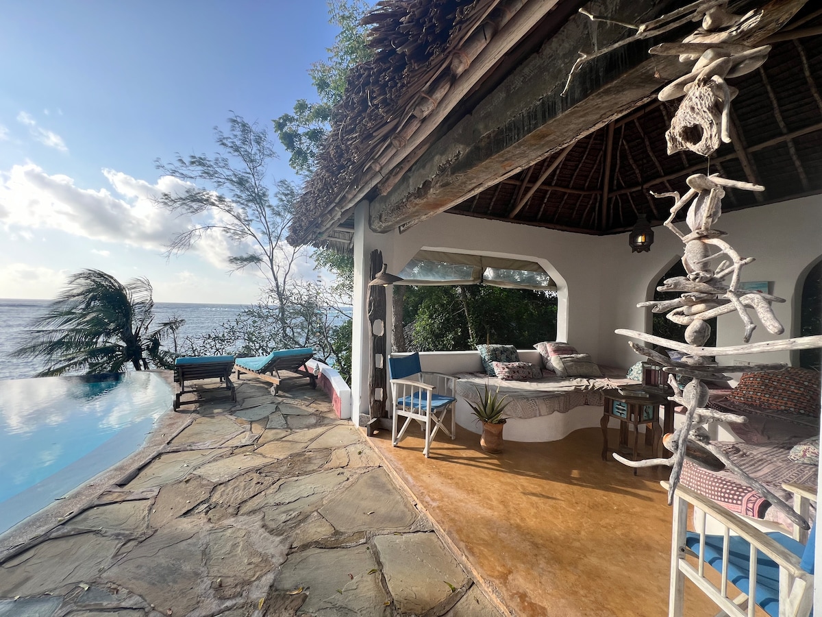 Mit Blick auf den Indischen Ozean direkt am Kilifi Creek mit eigenem privaten Pool, 3 Schlafzimmern mit eigenem Bad, einer offenen Küche und täglichem Zugang zu frischen Meeresfrüchten. Dieses schöne Haus befindet sich innerhalb des Mandharini Estate und liegt 15 Gehminuten vom Strand von Mandharini entfernt. Wachen Sie auf, um einen wunderschönen blauen Blick auf das Meer zu genießen, legen Sie sich auf unser Schaukelbett im Freien und beobachten Sie den Sonnenaufgang oder genießen Sie ein Bad im Pool. Dieses Haus bietet Privatsphäre, Entspannung, Intimität und eine kleine Romantik.