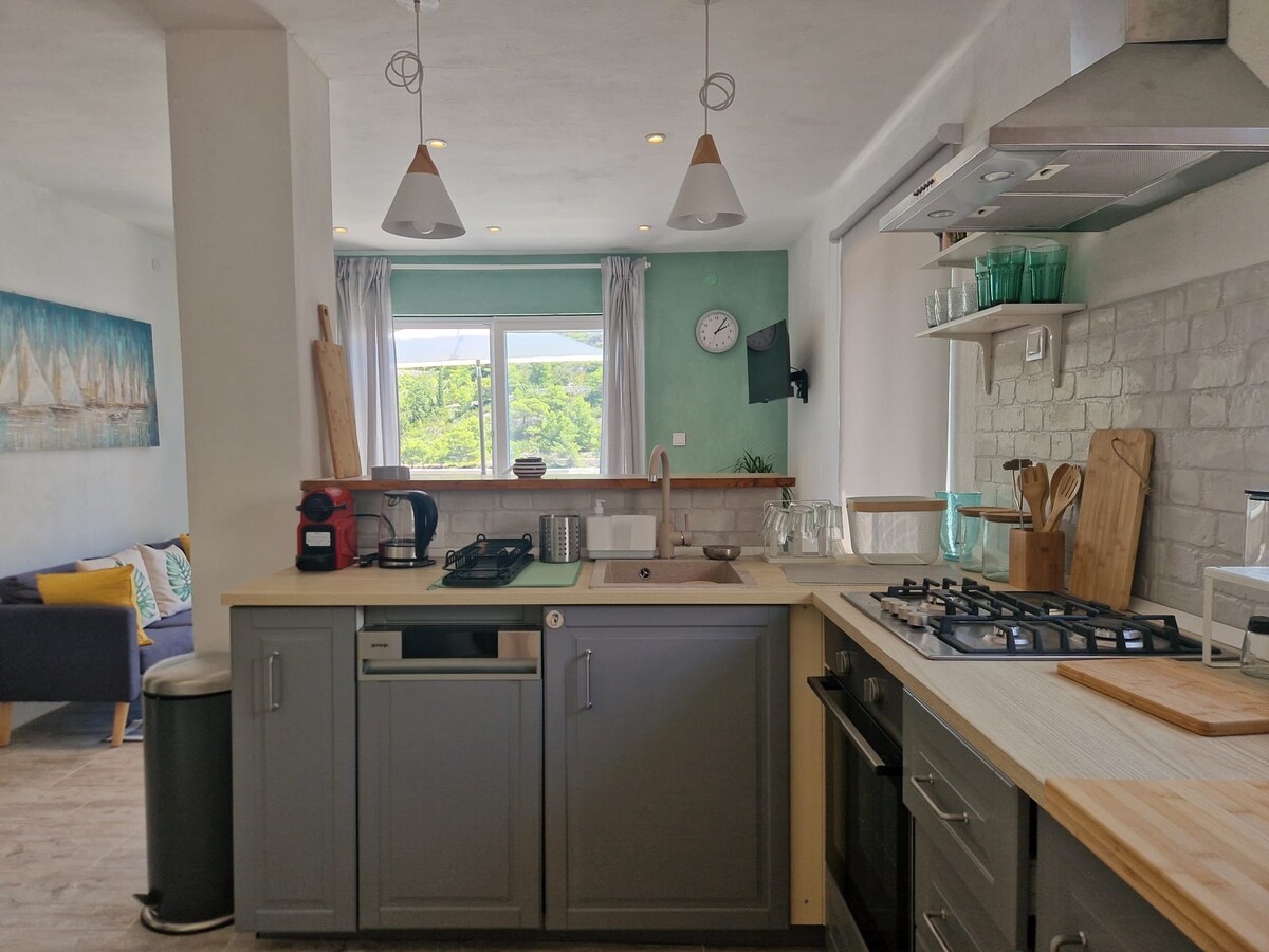 Entfliehe in unsere charmante Einzimmerwohnung mit einer geräumigen Terrasse mit Blick auf die wunderschöne Bucht. Eingebettet in den ruhigen Teil von Vis – Kut bietet es Ruhe, Privatsphäre und eine wirklich entspannende Atmosphäre. Nur einen kurzen Spaziergang von Restaurants, Stränden und lokalen Geschäften entfernt, ist es die perfekte Balance aus Ruhe und Komfort. Komm und erlebe die Magie unseres kleinen Paradieses.